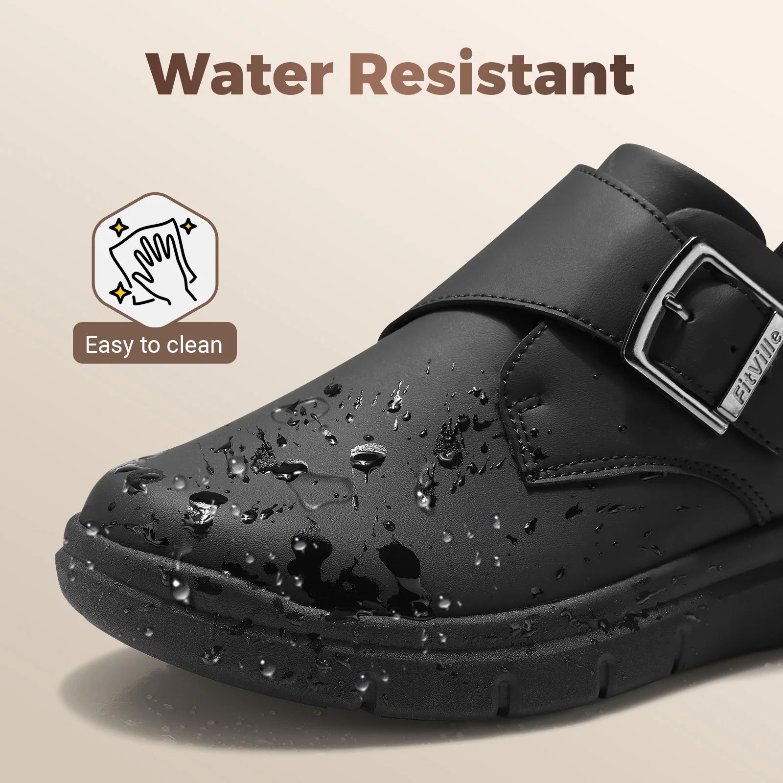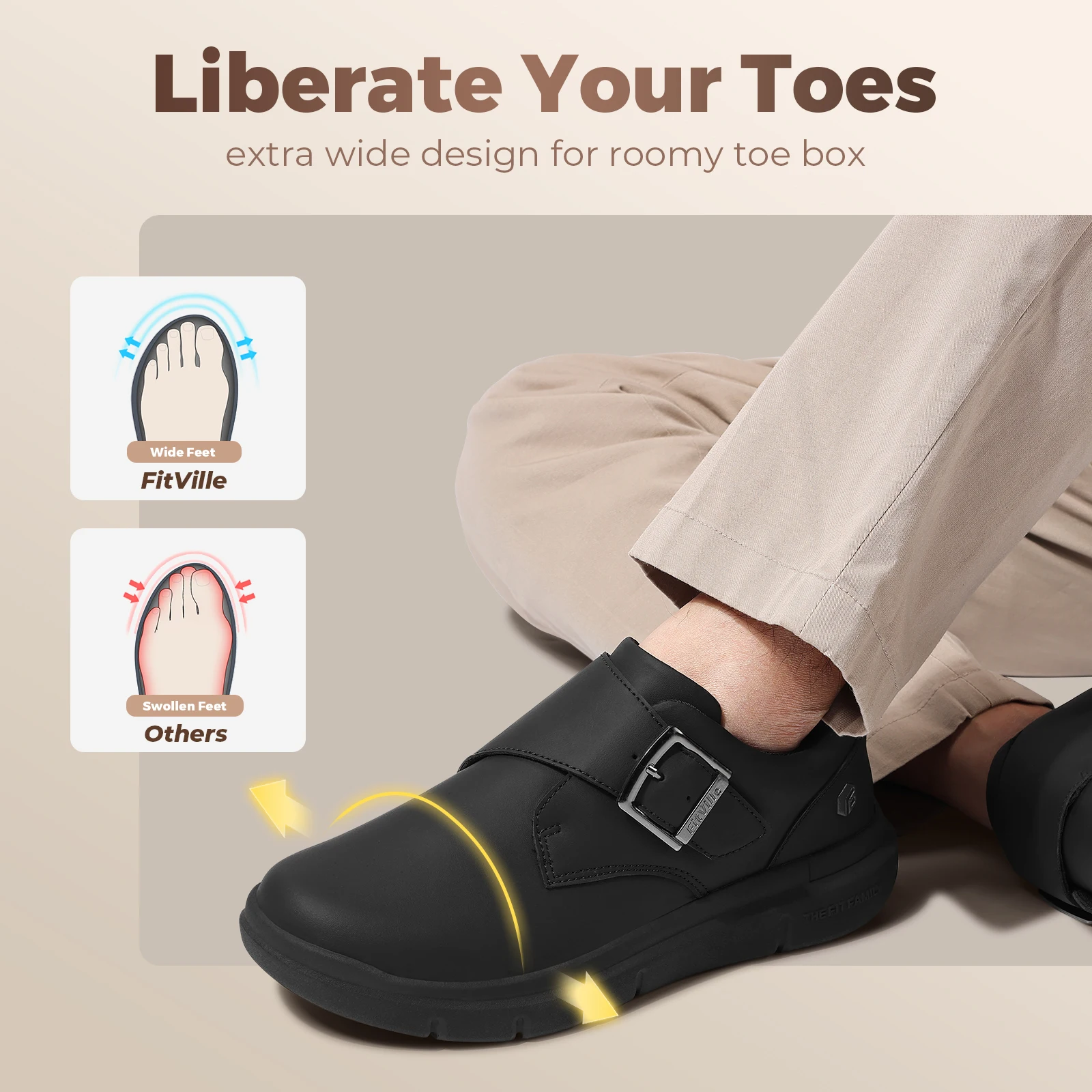 FitVille Men's Leather Shoes Wide Shoes for Swollen Feet Men's Diabetic Walking Shoes for Outdoor Business Walking Shoe