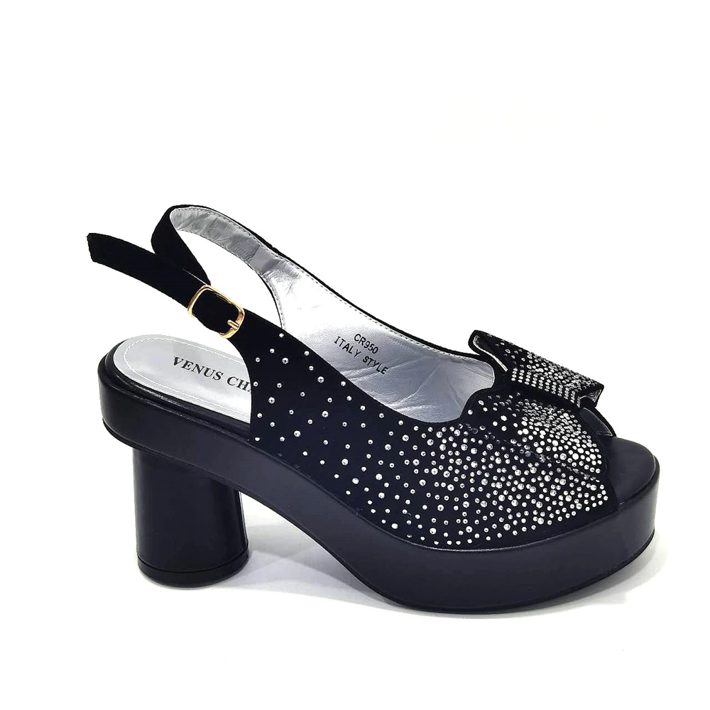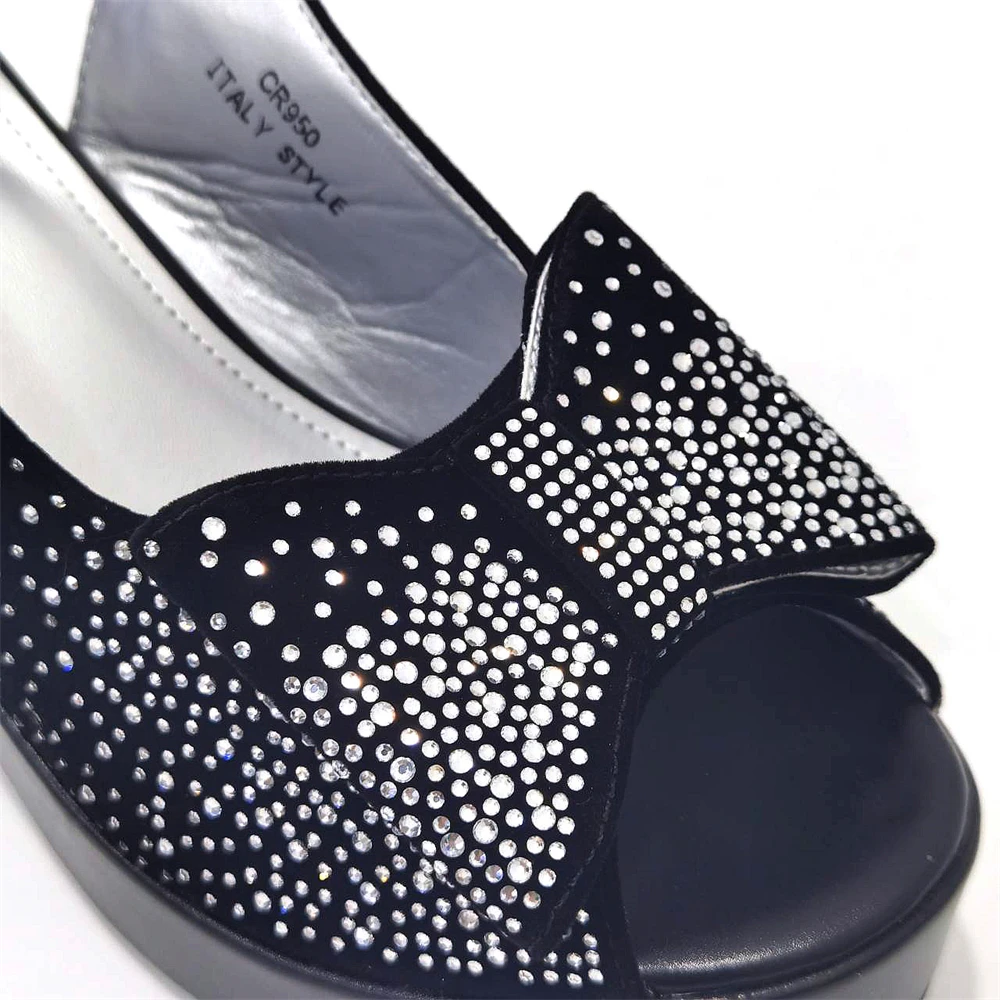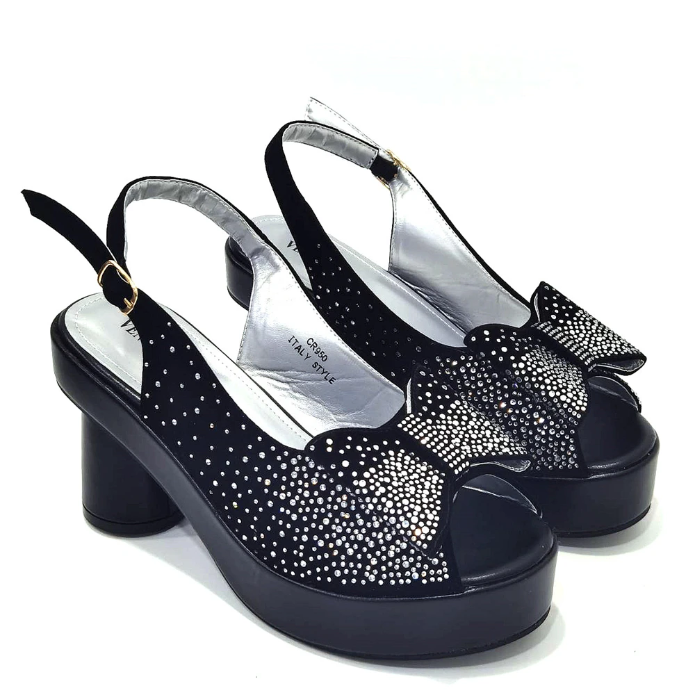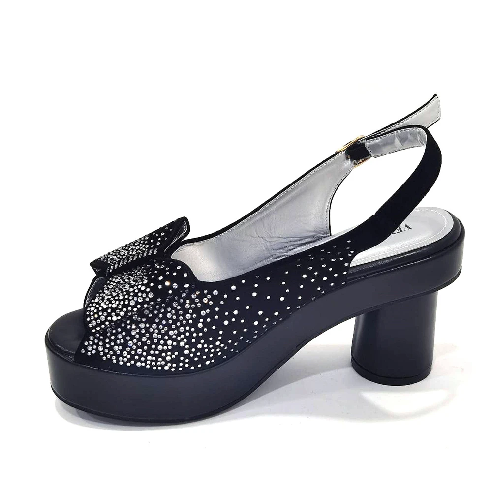 2024 Silver Fashion Square Heels with Platform African Women Shoes and Bag Set Full Crystal Pumps for Wedding Party