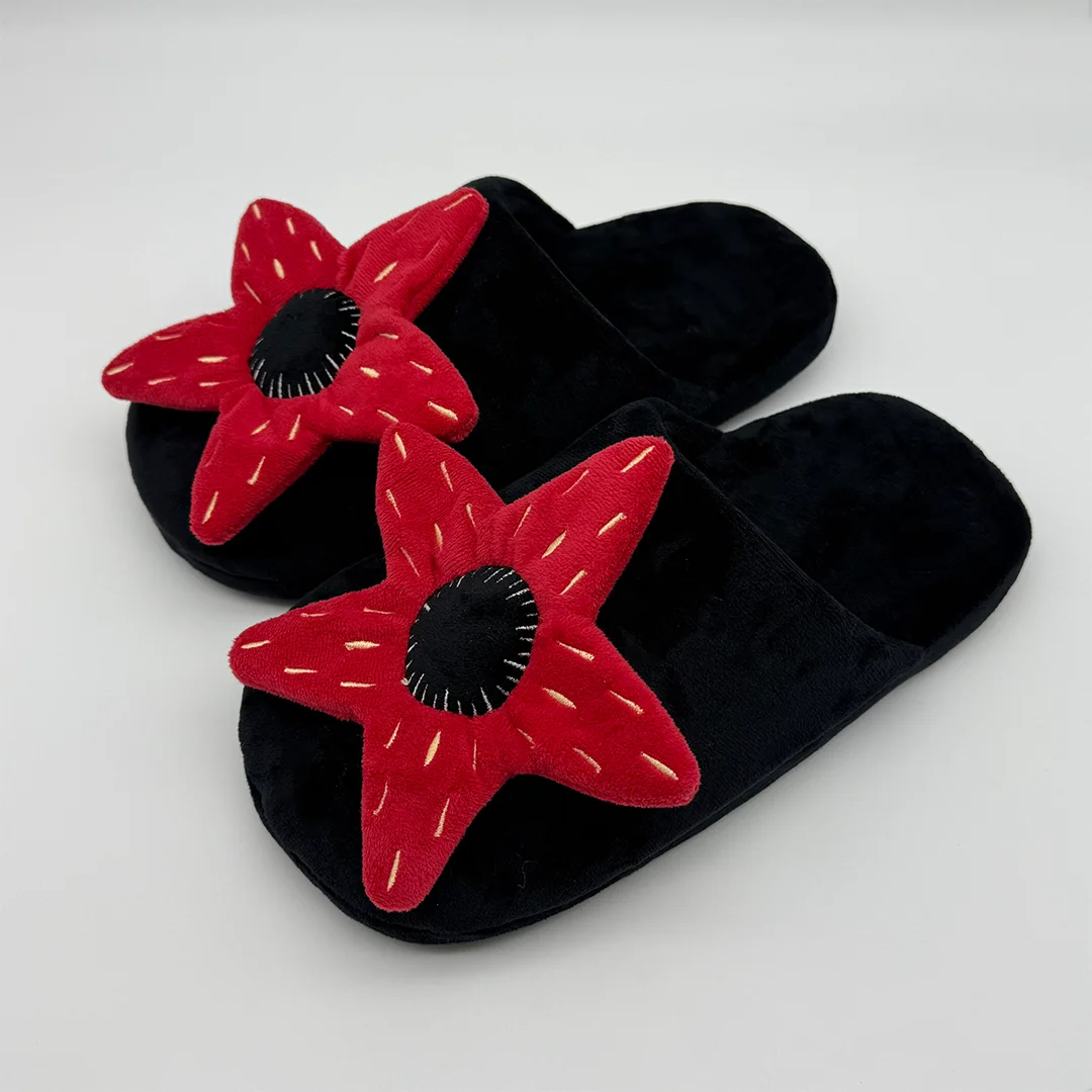 2025 New Stranger Thing Plush Slippers Cartoon Horror Red Flower Stuffed Shoes Women Men Indoor House Slipper Christmas Gifts