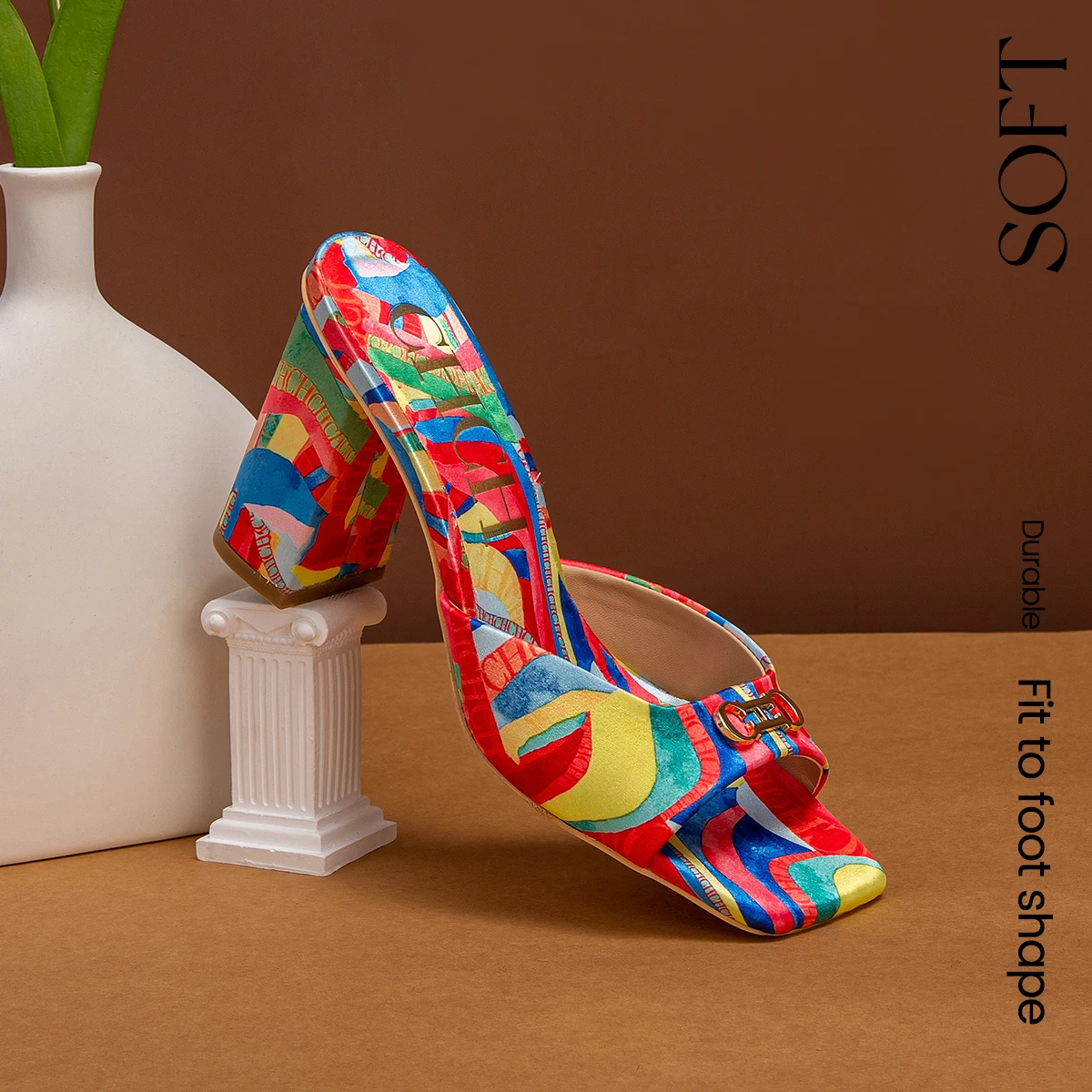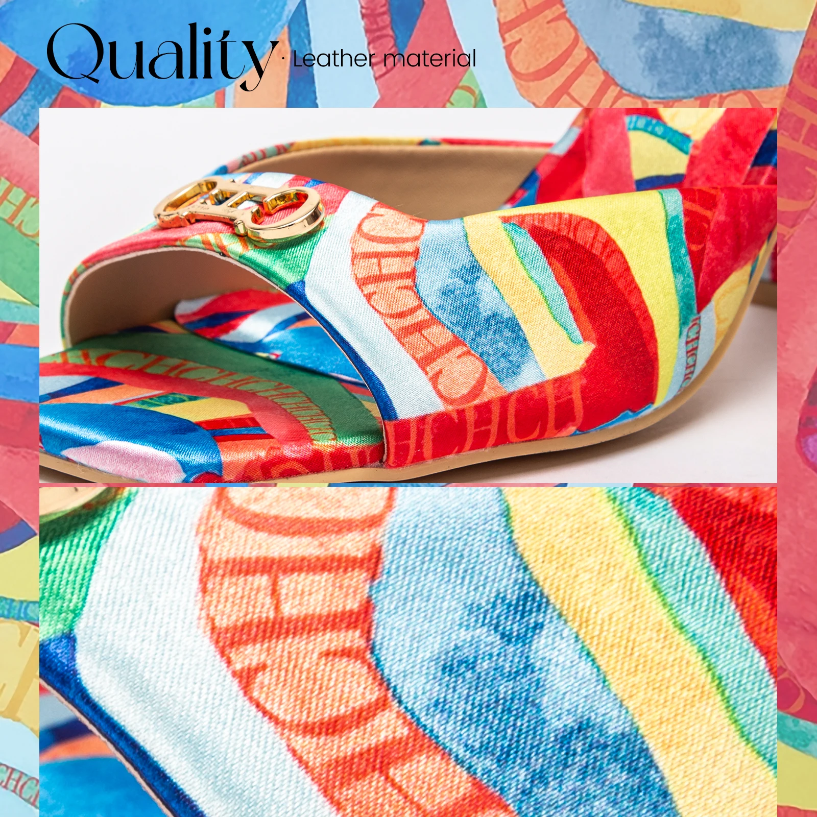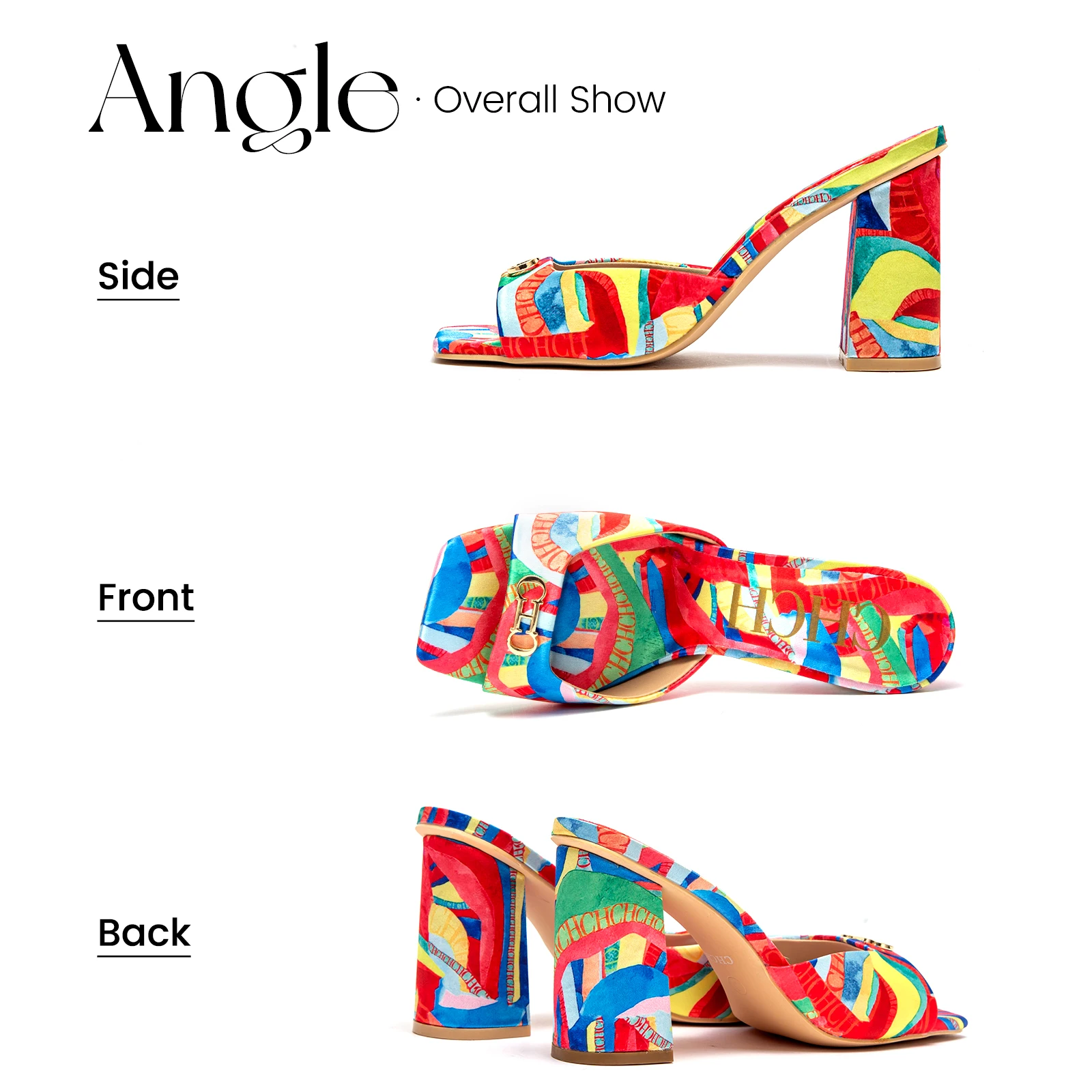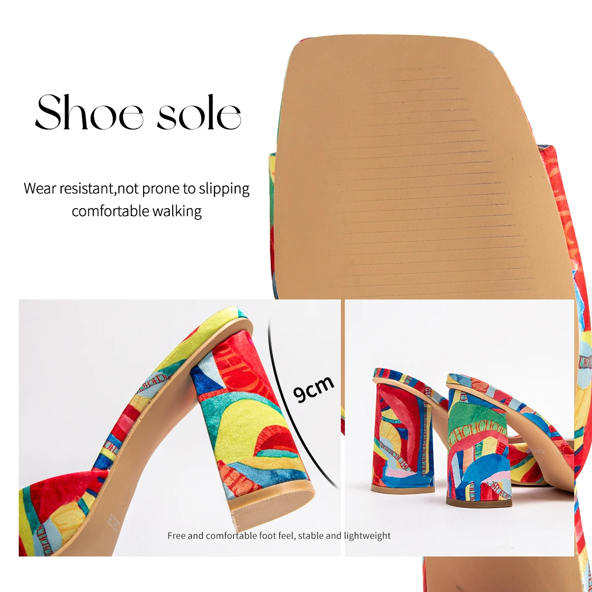 CHCH Women's Thick Heel Sandals Square Open Toe Sliding Sandals
