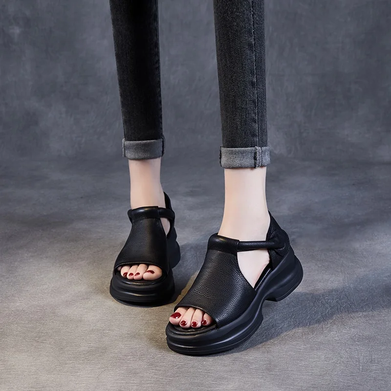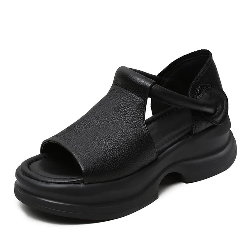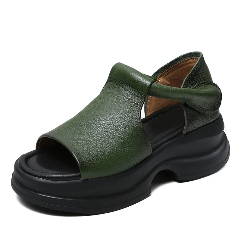 DRKANOL 2026 Summer Shoes Women Thick Heel Sandals New Design Hook&Loop Genuine Leather Open Toe Casual Platform Sandals Ladies