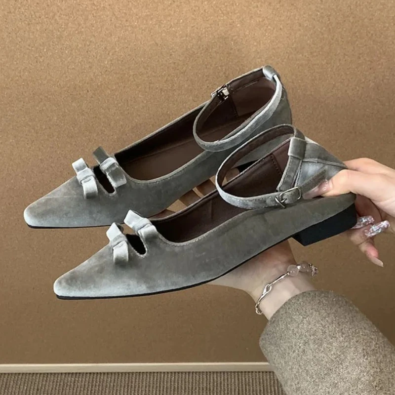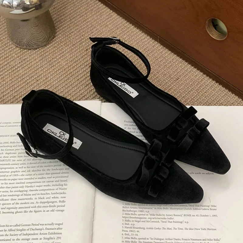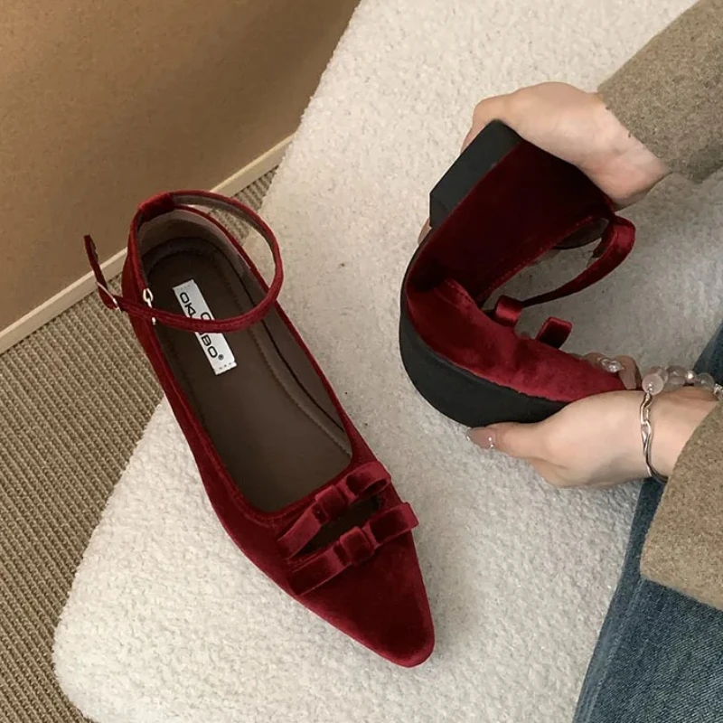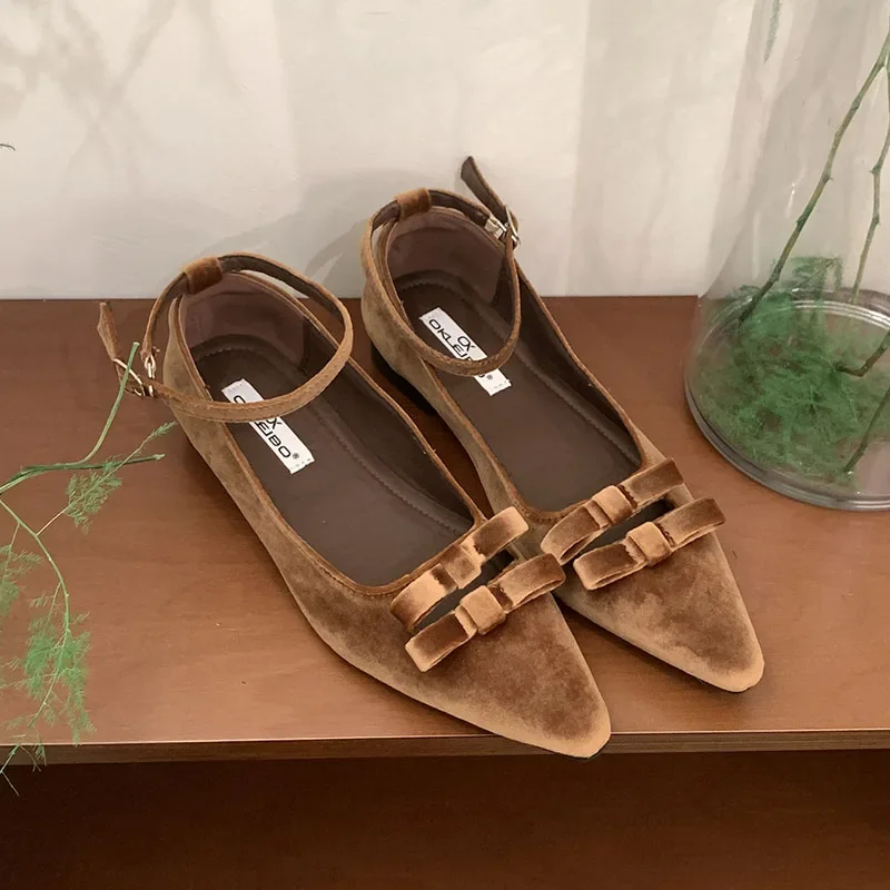 Fashion Silk Pointed Toe Low Heel Pumps Women Bow Ankle Strap Designer Flats Female Elegant Banquet Party Shoes Zapatos De Mujer
