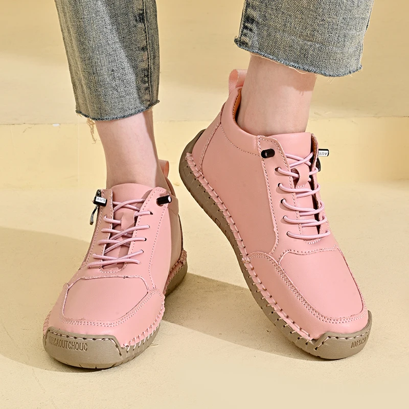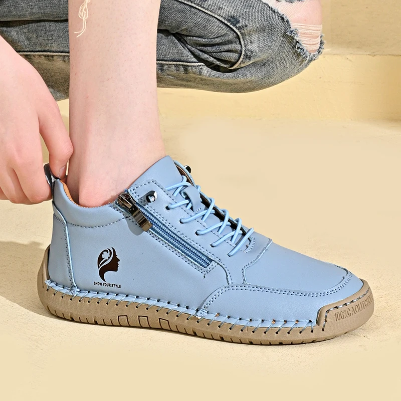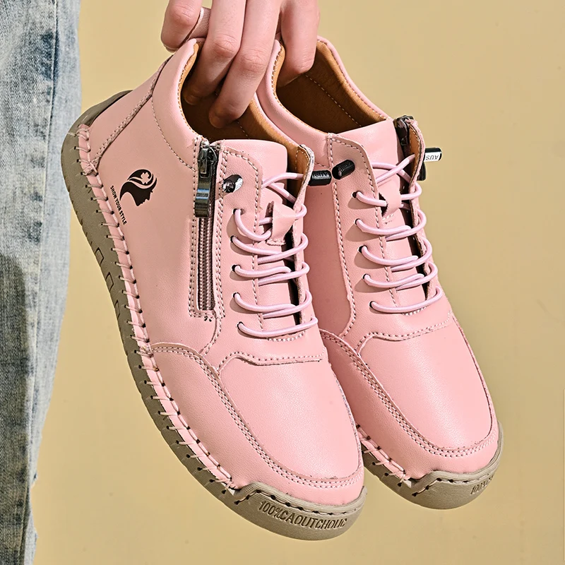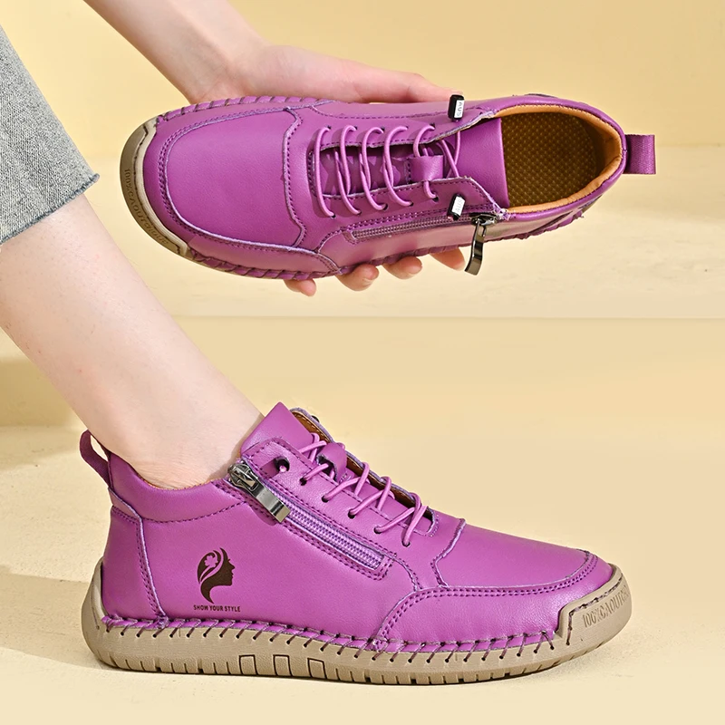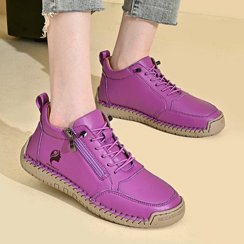 New Women's Boots British Style Retro Women Ankle Boots Fashion Mid Top Flat Casual Shoes Handmade Leather Women's Shoes