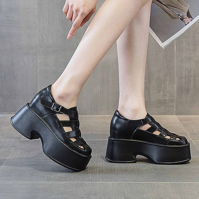 Women's Platform Sandals 2023 Summer Genuine Leather Thick Sole Female Shoes Fashion High Heels 11cm Women Summer Sandals Shoes