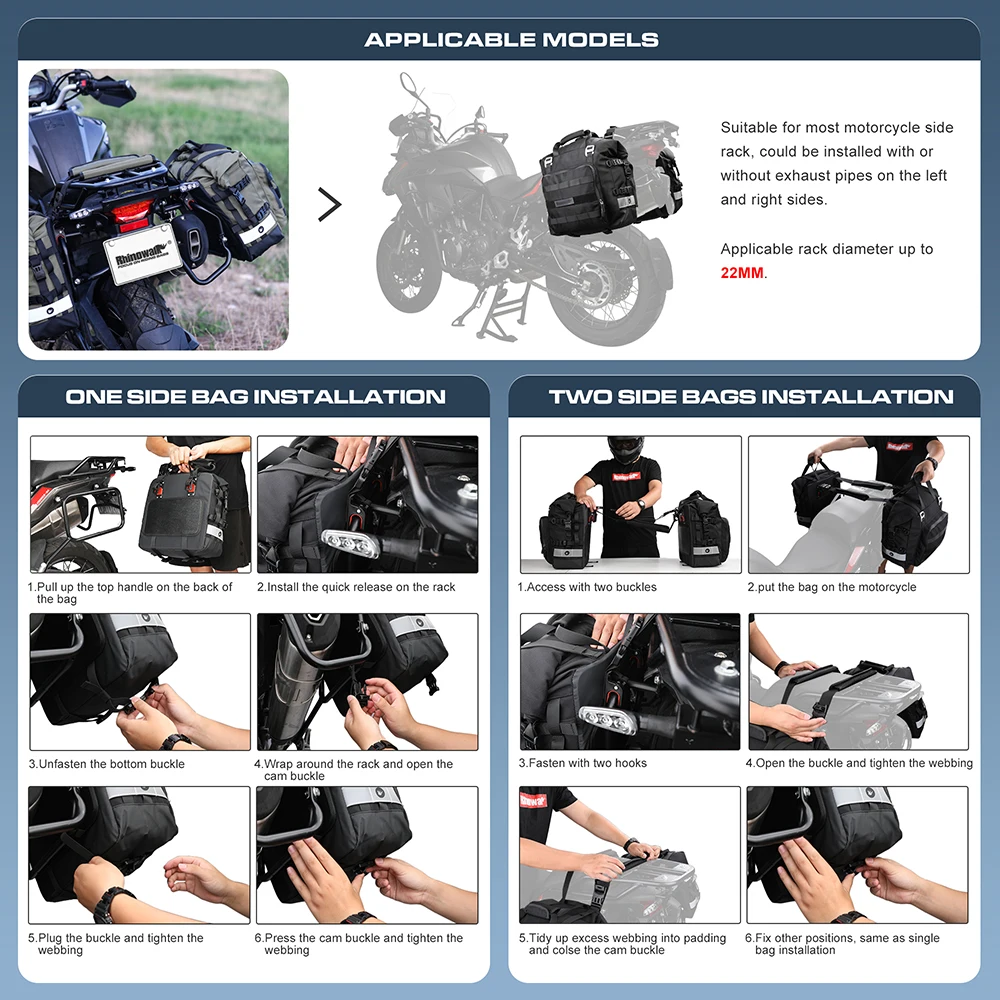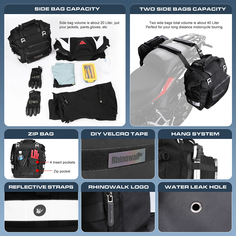 2PCS Motorcycle Bags Side Motorcycle Travel Bags 20-40L Motorcycle Bags Luggage Waterproof Universal Side Saddle Bags for Motorc