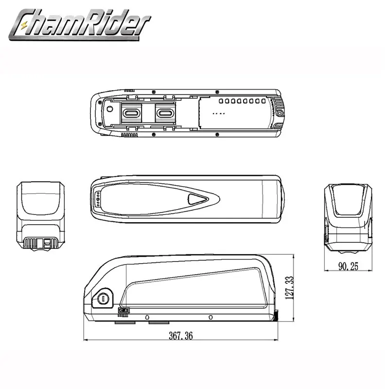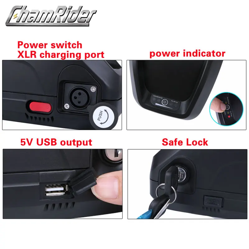 Electric Bike Battery Box, E-bike Battery Case, Box for HaiLong, SSE-112, 10S8P, 13S6P, 14S6P, Downtube, USB Port, 48V, 52V