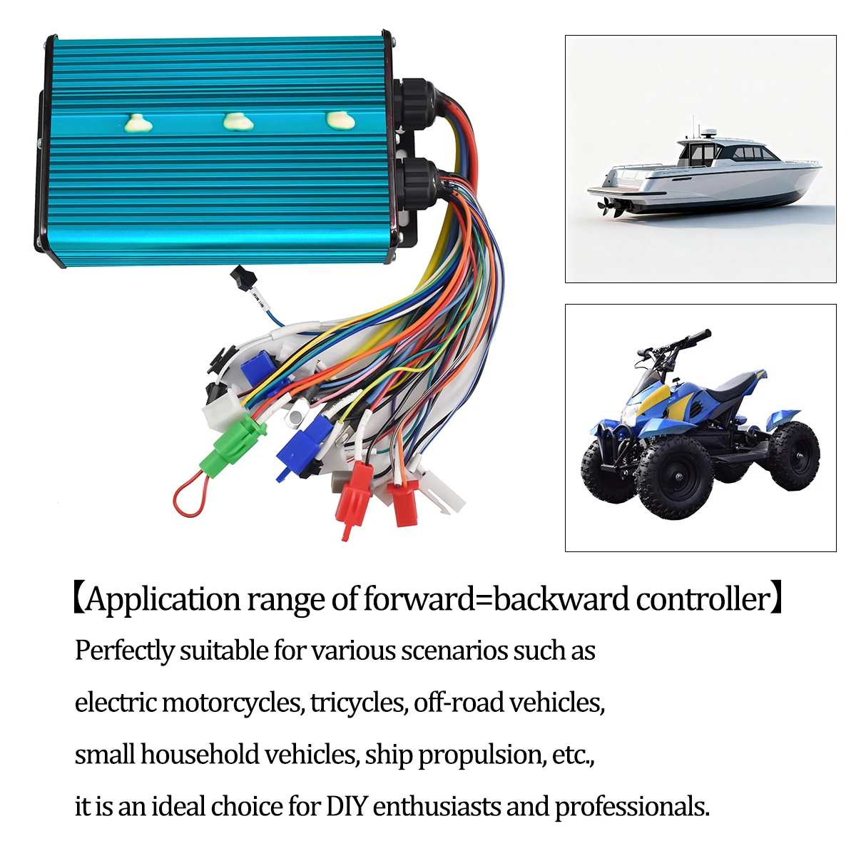 Aluminum alloy construction, weighs 1044g; compact for e-bike/motorcycle mounting.
