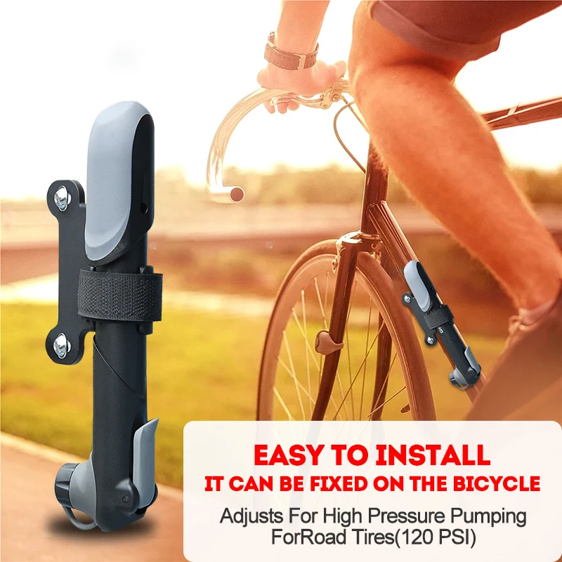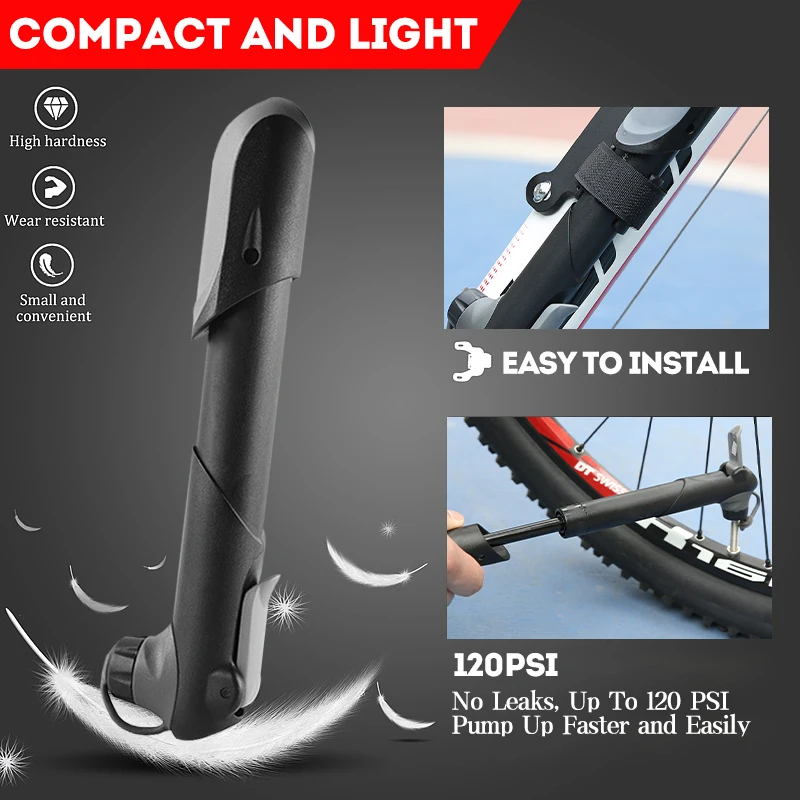 Mini Portable Bike Pump with Pressure Gauge AV/FV Valve Inflator for MTB Outdoor Cycling