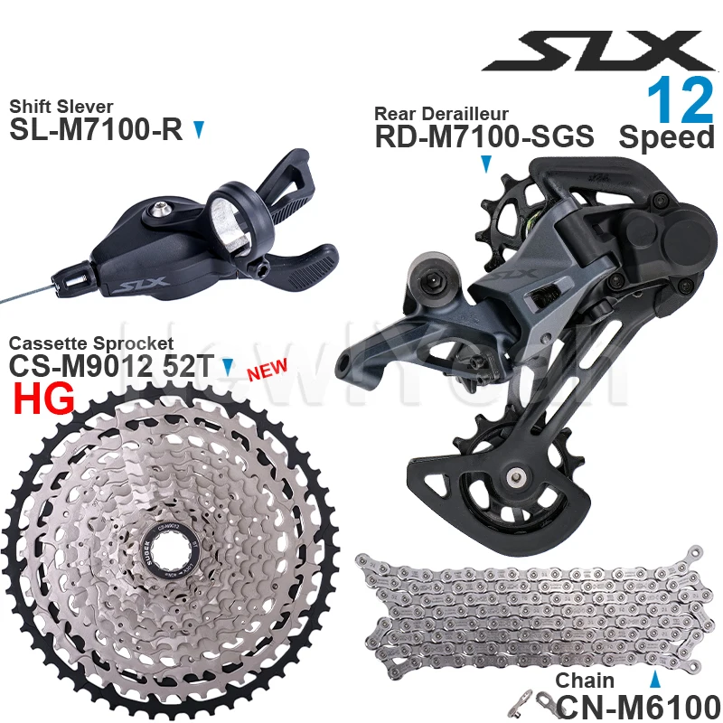 SHIMANO SLX M7100 1x12 Speed Groupset with Shifter Rear Derailleur CN-M6100 Chain Original and Cassette Sprocket 11-50T/52T