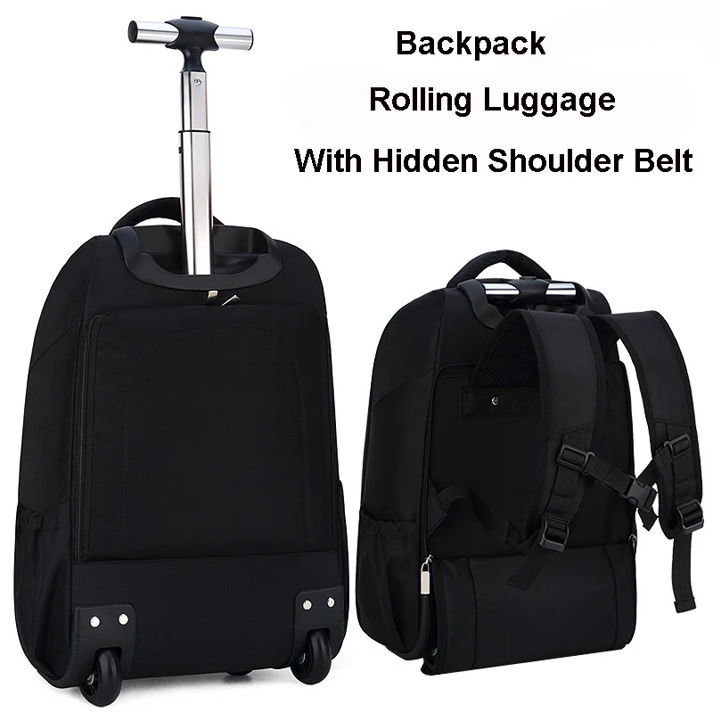 Men Trolley Backpack Shoulders Travel Bag with Wheels 26 Inch Students Rolling Luggage Business Trolley Large Capacity Suitcases