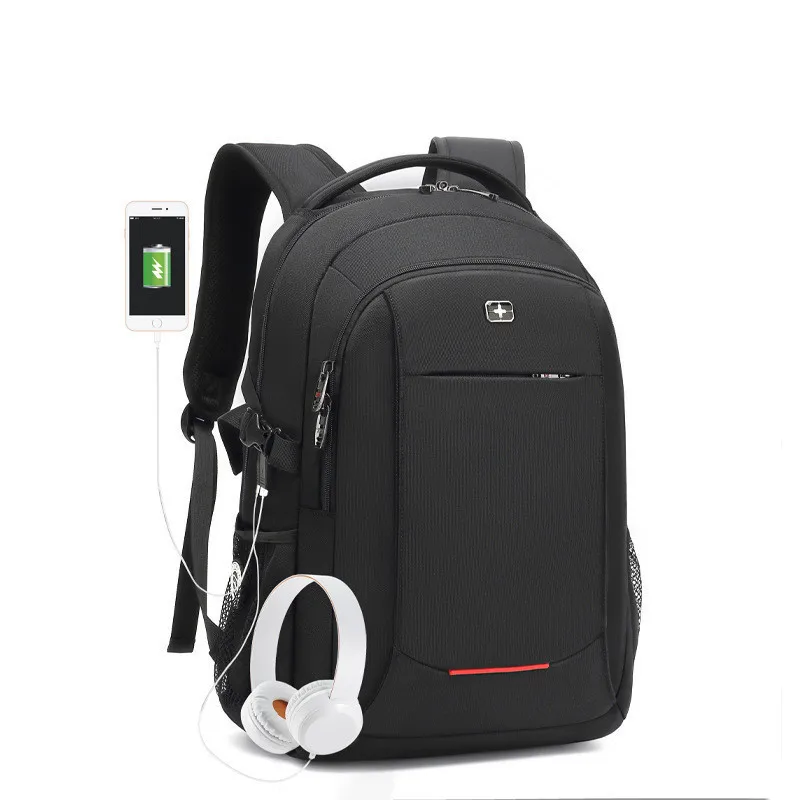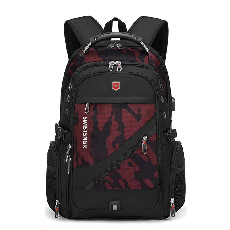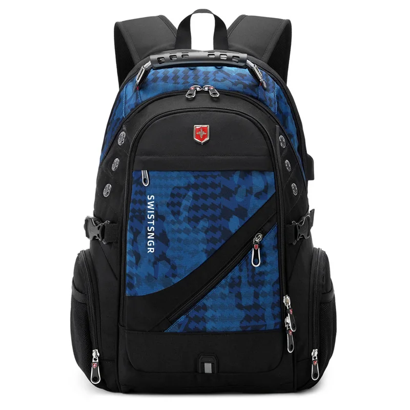 Nylon material for waterproof men's Swiss backpack, business travel bag.