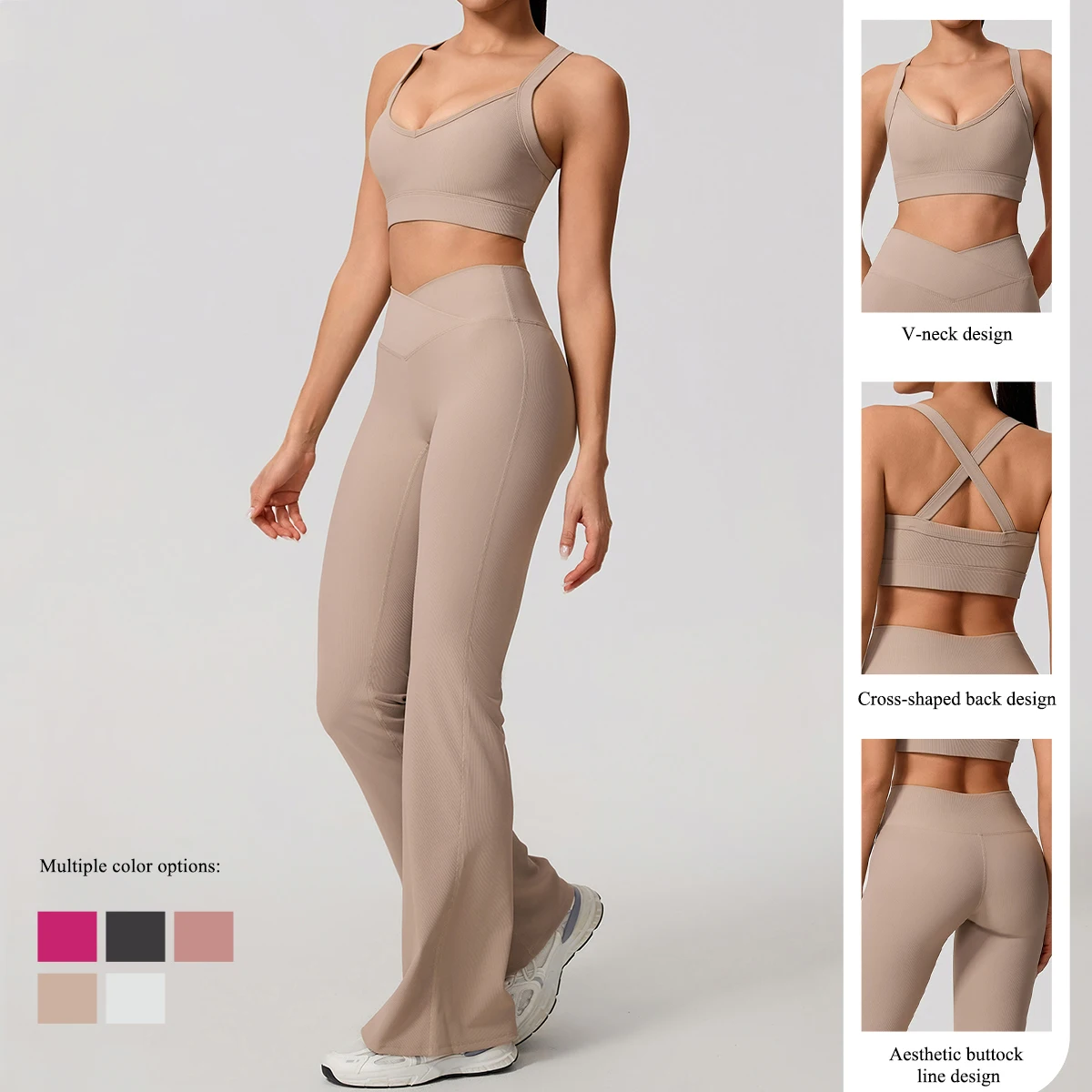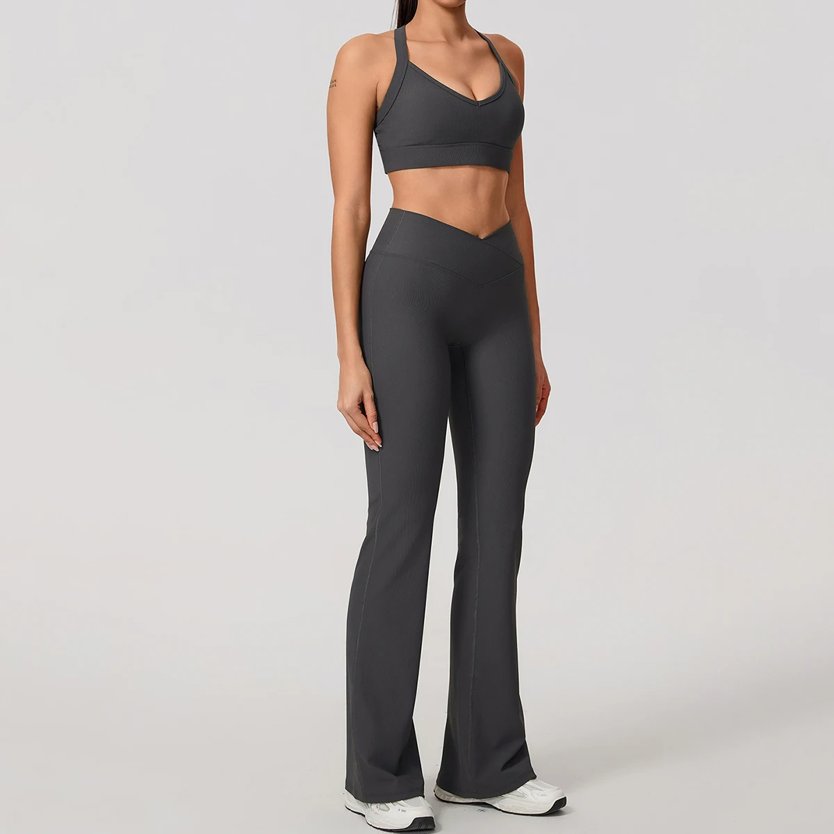 Hearuisavy Fitness Set 2Pcs High Intensity Back-Cross Anti-Shock Sports Bra Gym Women High Waist Butt Lift Wide Leg Flared Pants