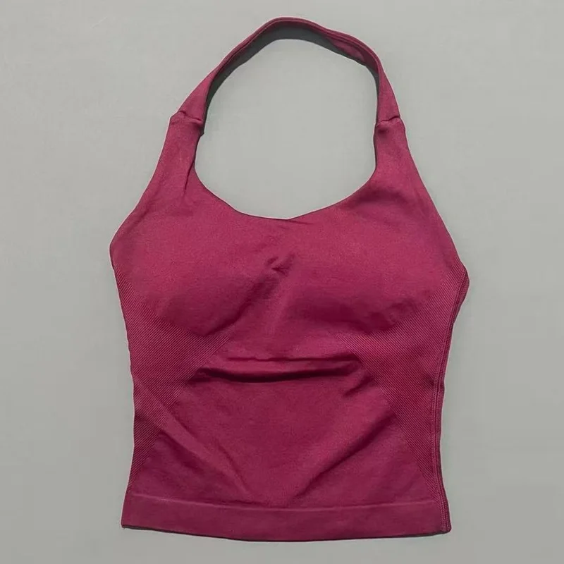Impact Halter Top Solid Color Sexy Woman Seamless Backless Yoga Top Padded Fitness Bra Running Workout Vest Gym Sports Tank Top