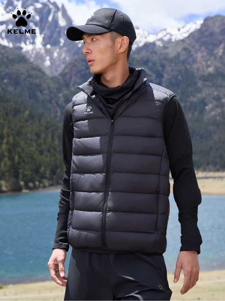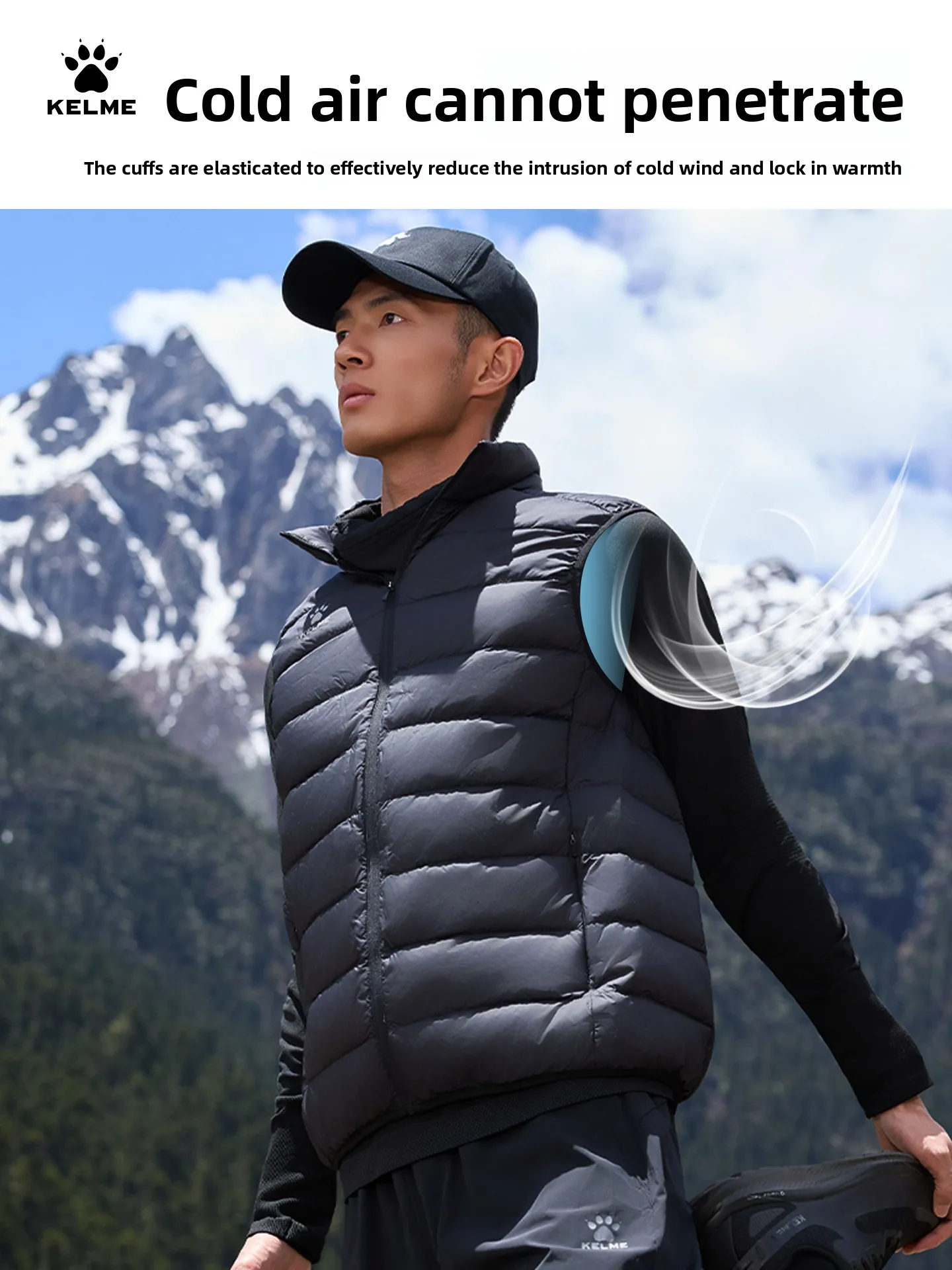 Kelme Lightweight Down Vest Men's Winter Running Shoulder Jacket Outdoor Sports Hiking Cotton Jacket Warm And Windproof Vest