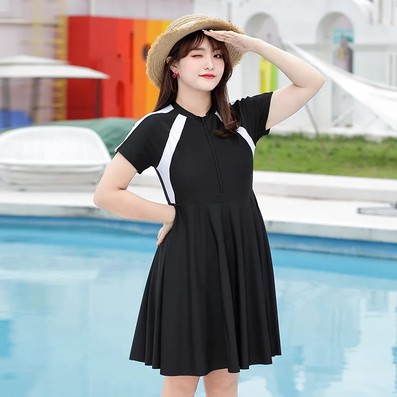 Korean One Piece Swimwear Ladies Plus Size Swimwear Women Monokini Zipper Front Sports Swimming Suit Fused Big Breasts Summer