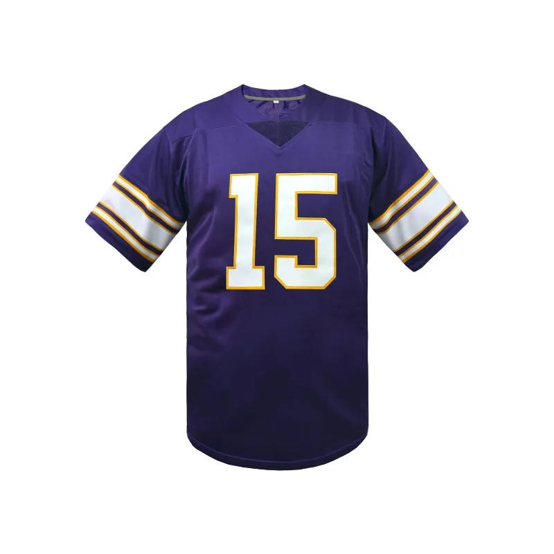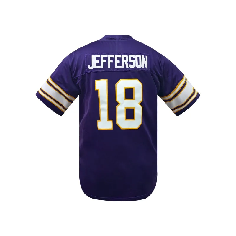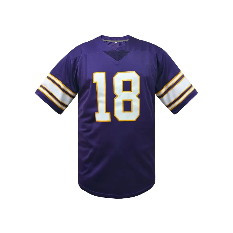 Men's Embroidery Rugby Jersey Breathable T-shirts V-neck Minnesota #18 Justin Jefferson Short Sleeve Embroidered Football Jersey