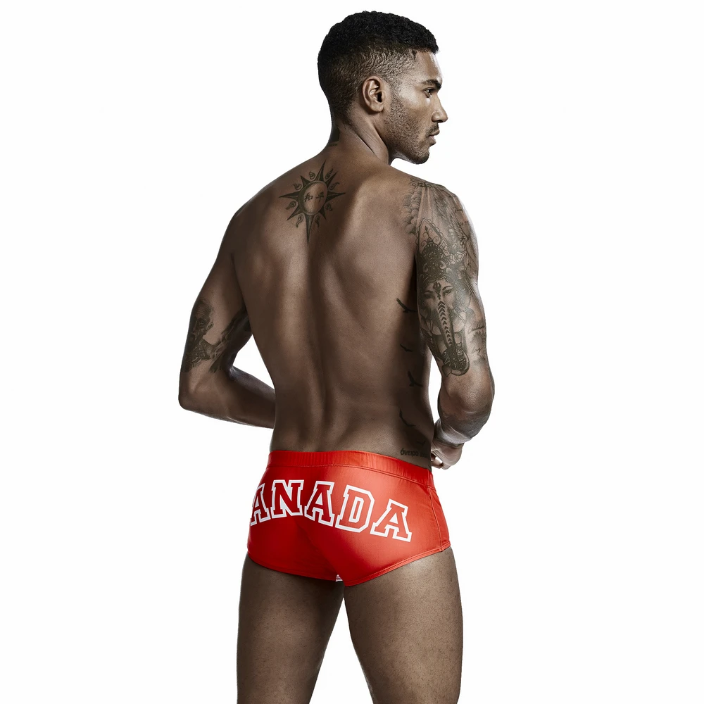 Seobean Men's beach hot springs quick dry flat angle low waist swimming trunks aquatics swimsuit American flag