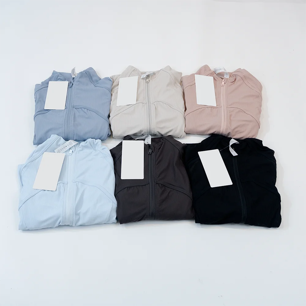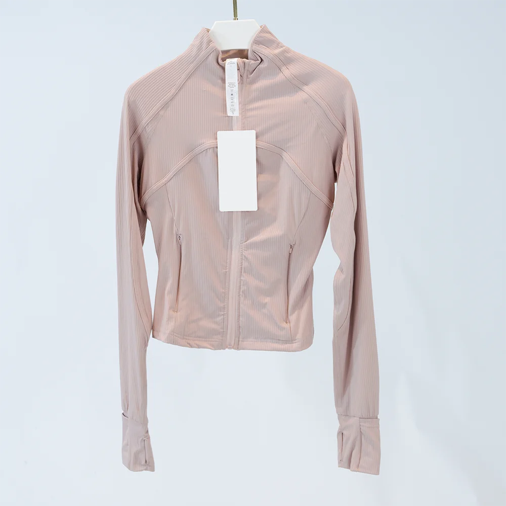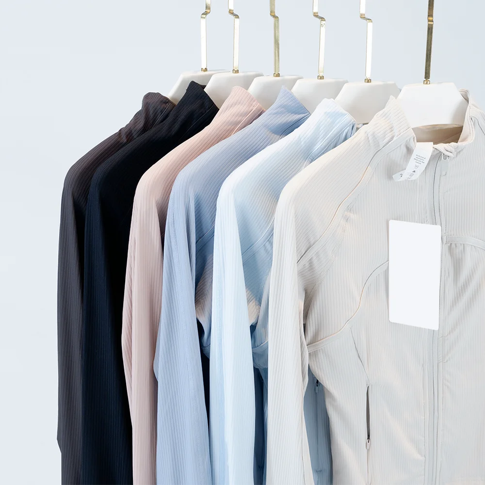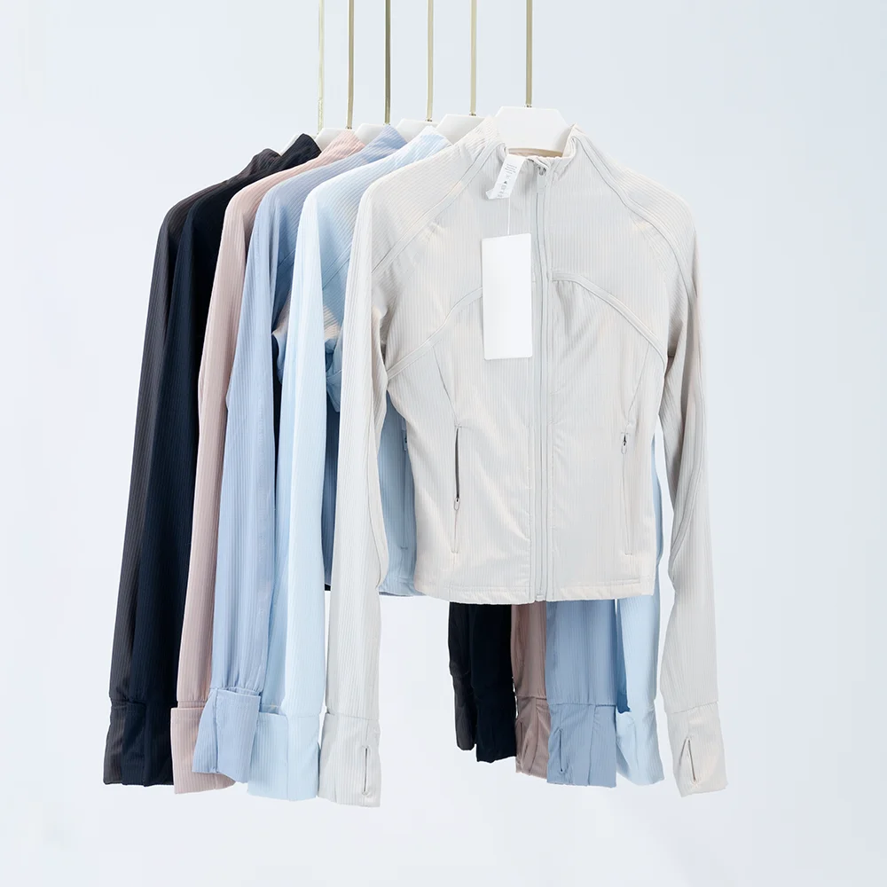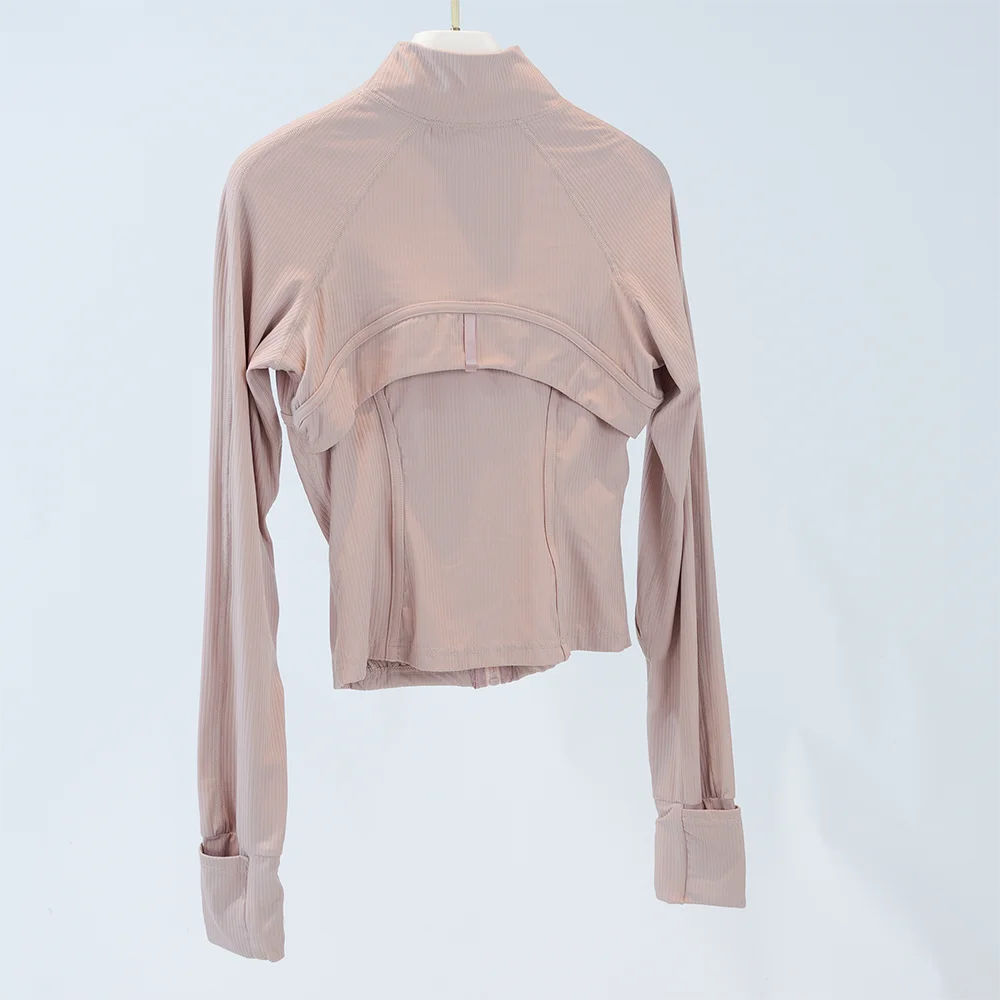Yoga Wear Women's Sports Jacket Ribbed Jacket with Stand-Up Collar Breathable Nylon High-Elastic Slim Fit Running Sun Protection