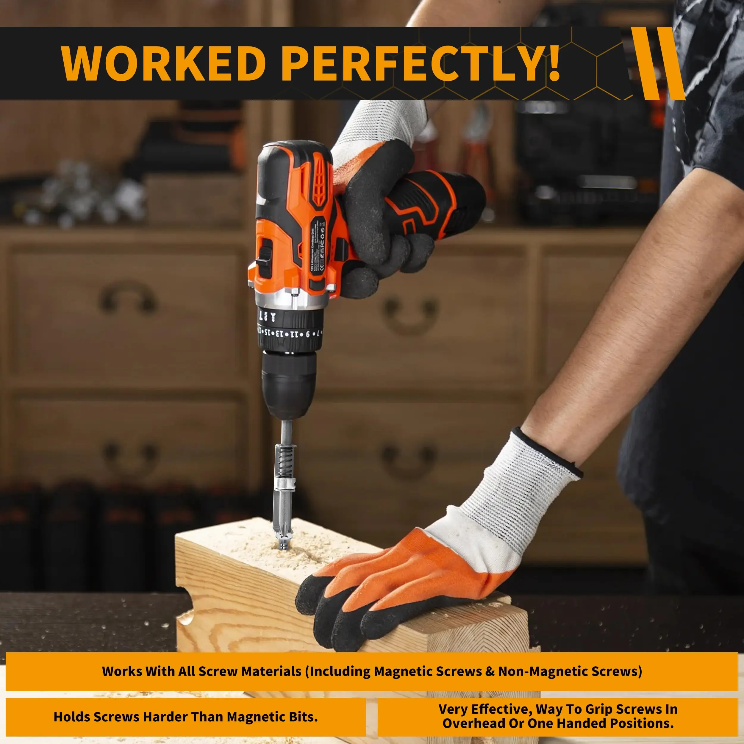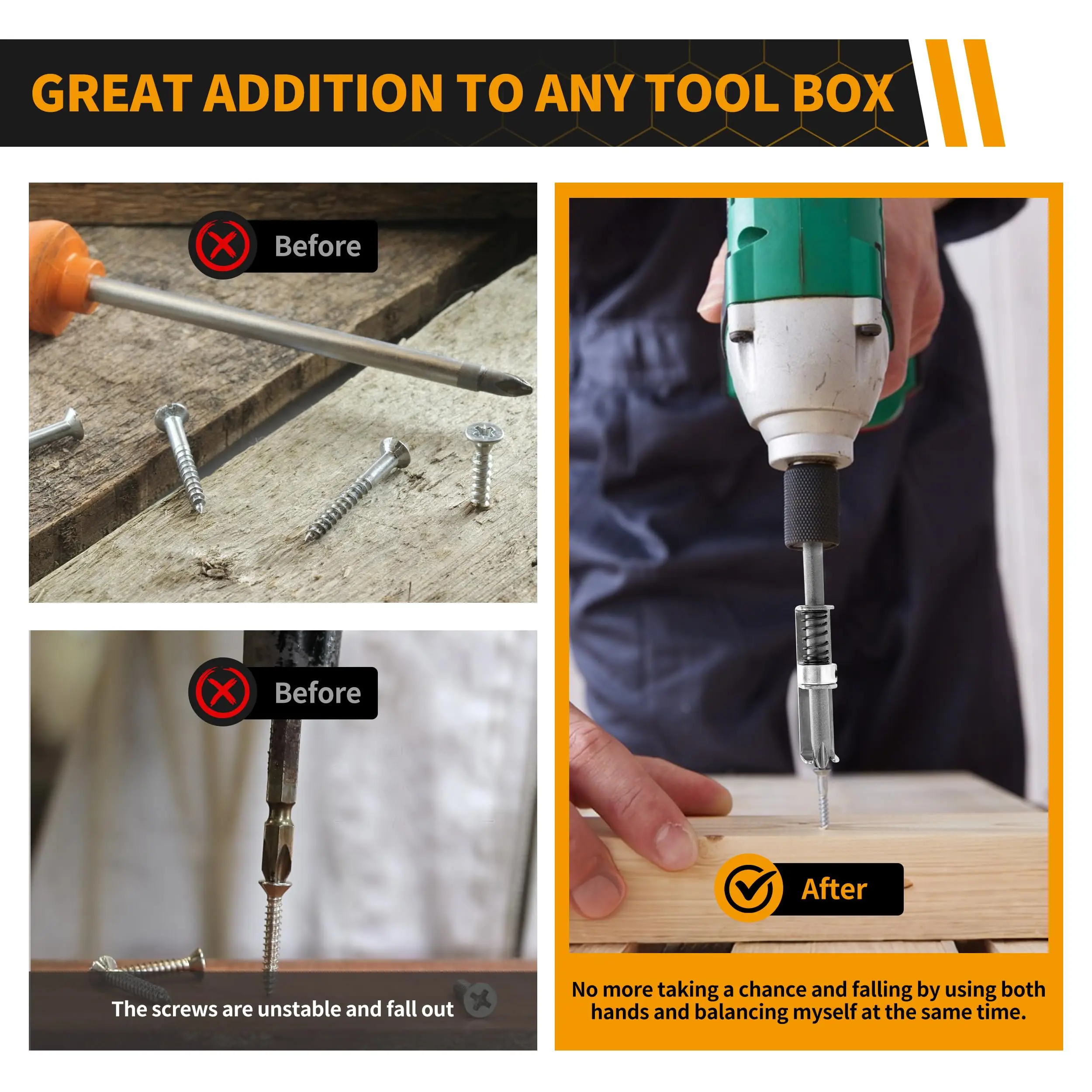 Rafford Anti-slip Spring-loaded Screwdriver Bit Holder with Replaceable T20 T25 Torx Bits One-handed Operation&Fastener Securing