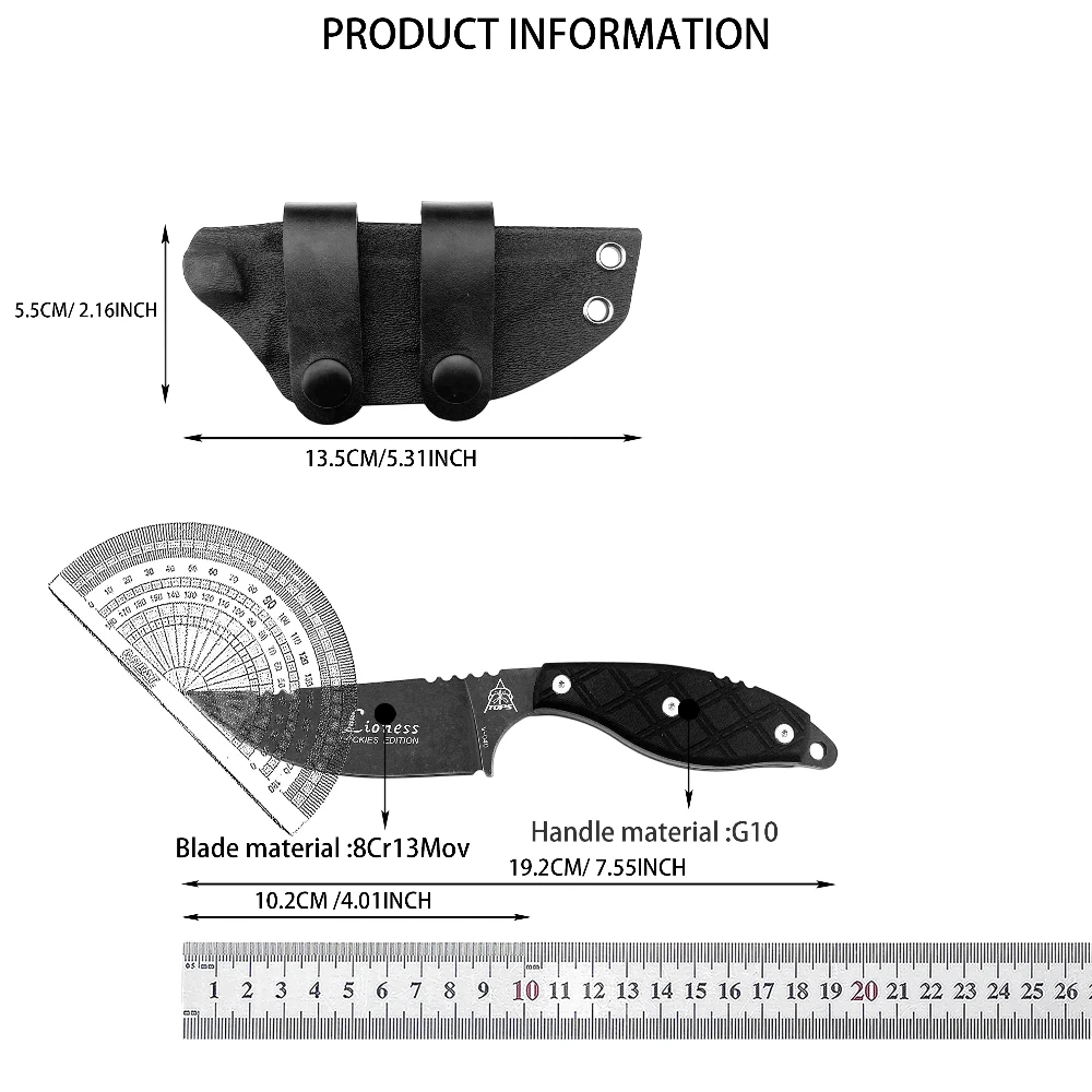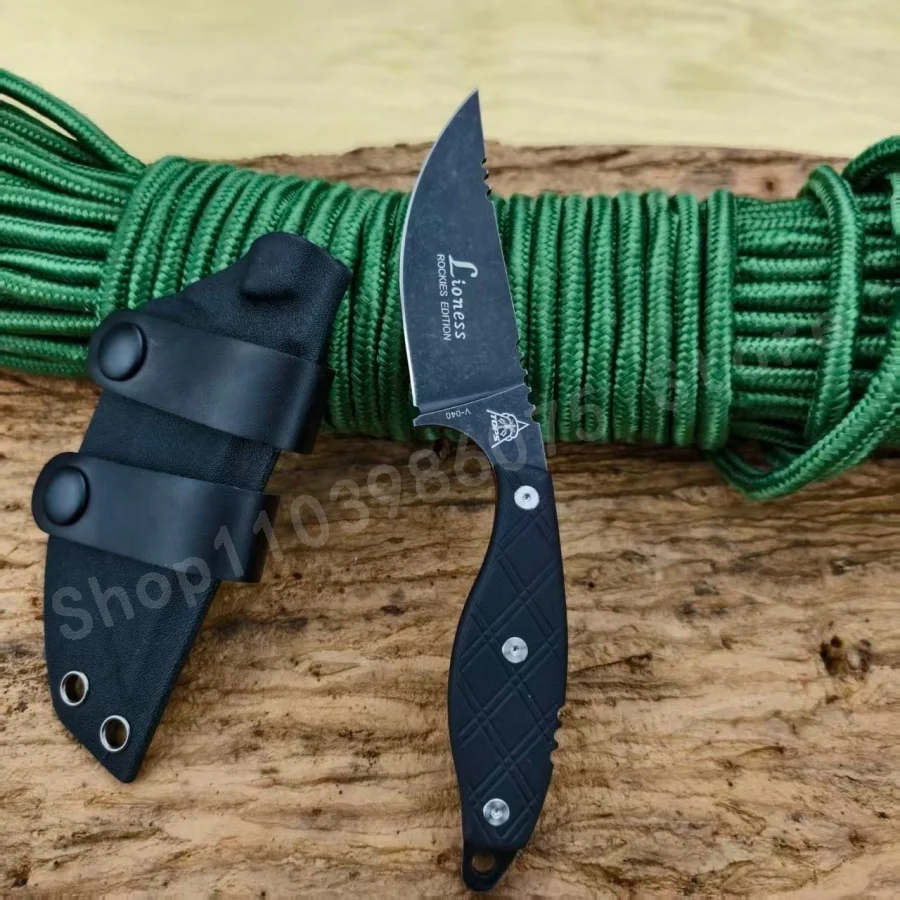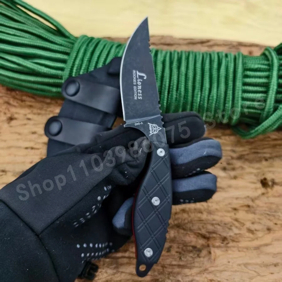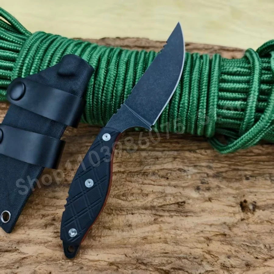 1pc V040 High-hardness Fixed Blade Knife 8Cr13Mov Blade Black G10 Handle Suitable for Outdoor Camping Practical Cutting Knife