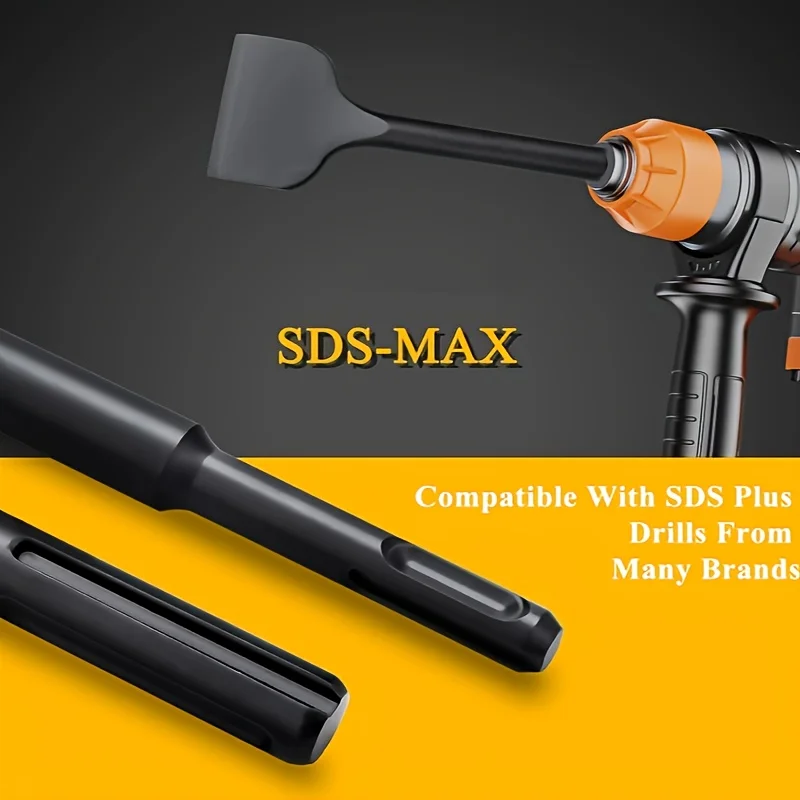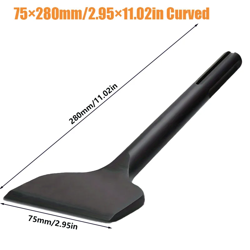 75*280mm SDS Max Wide Curved Tile Chisel, Beveled Angle Black Scraper for Removing Tile Grout & Thinset