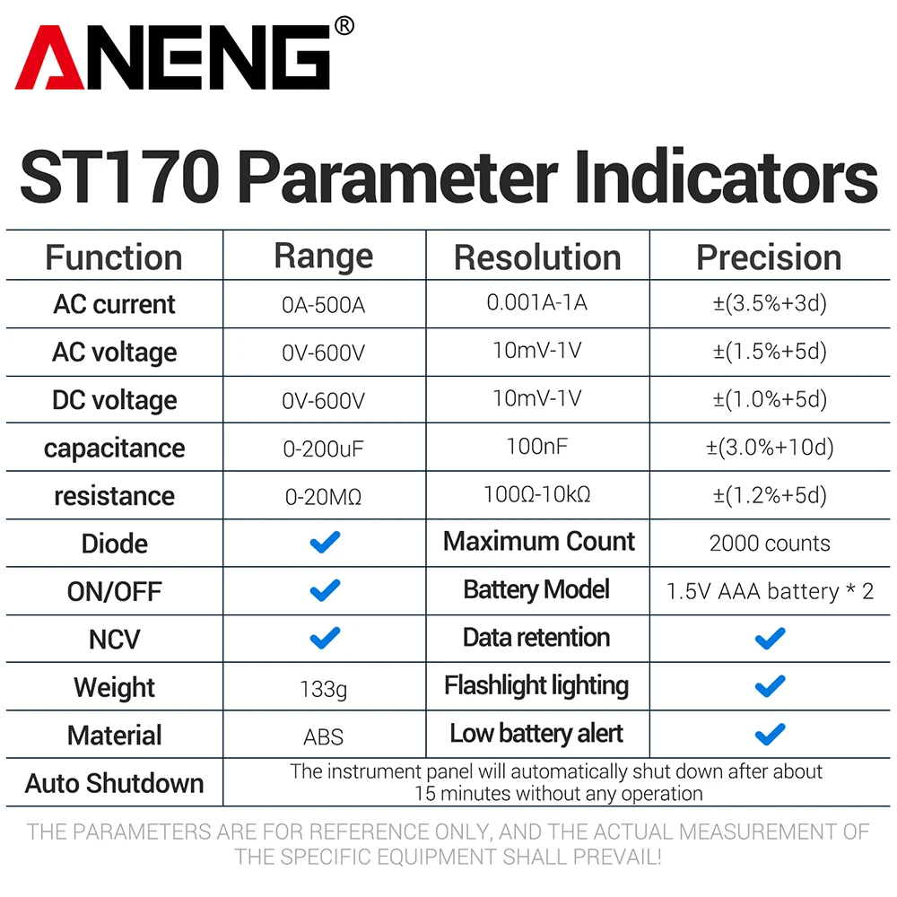 Car Repair Clamp Meter 1999 Counts professional ANENG ST170 multimeter AC/DC Voltage Tester Capacitance NCV electricians tools
