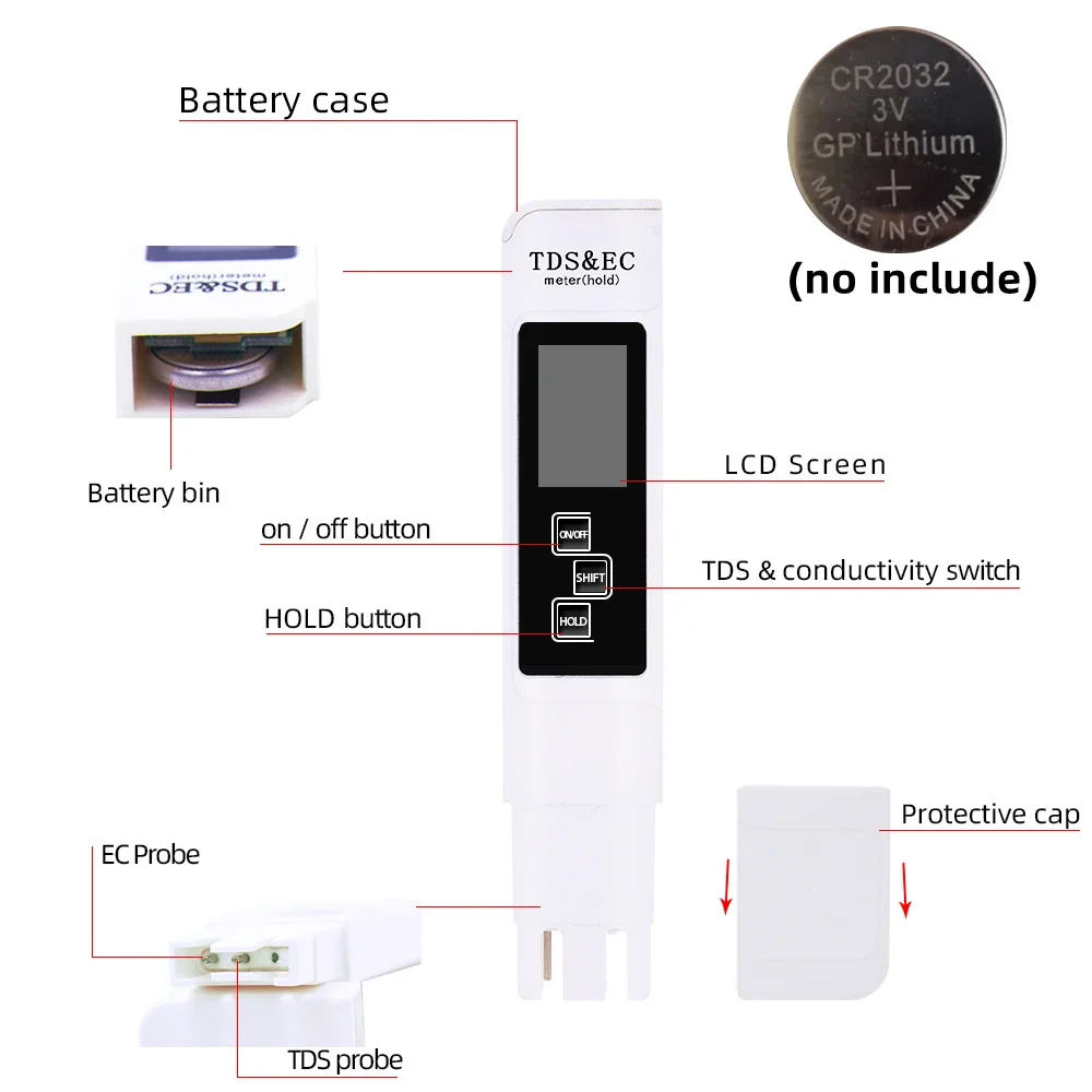 Digital PH/TDS/EC Meter Tester Thermometer Pen Water Purity PPM Range 0-9999 Filter Hydroponic for Aquarium Pool Water Monitor