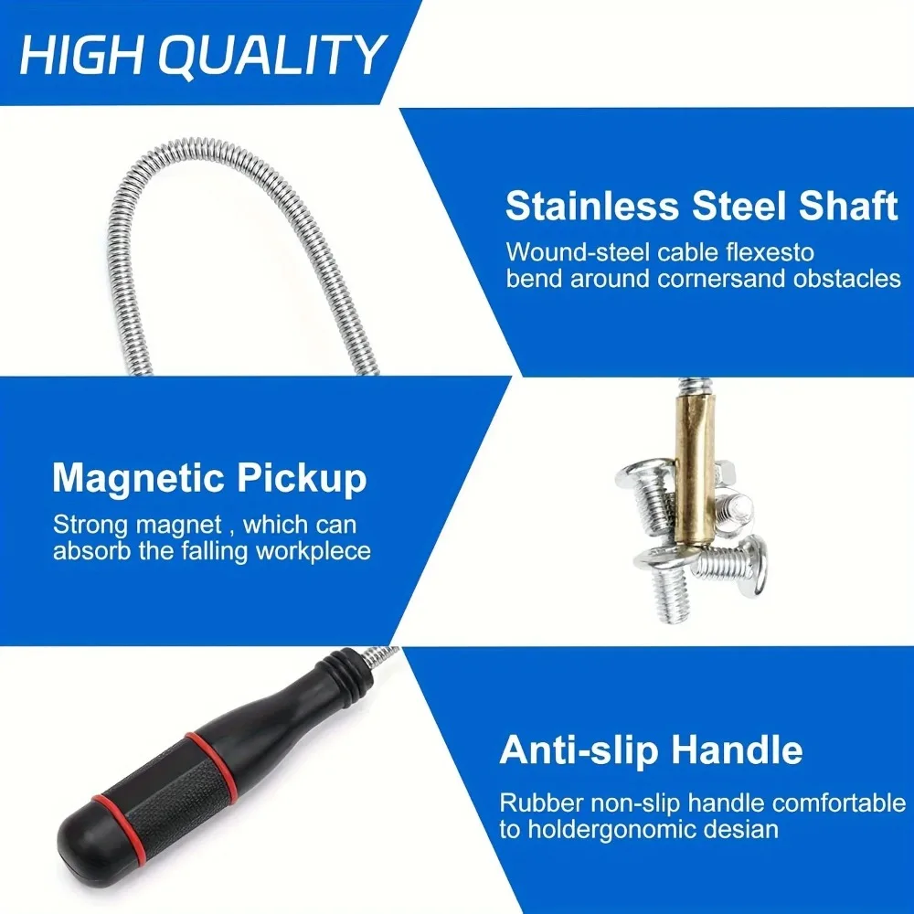 Flexible Magnetic Pickup Tool: Strong Suction Rod for Auto Repair, Sink Drain & Multi-Purpose Use