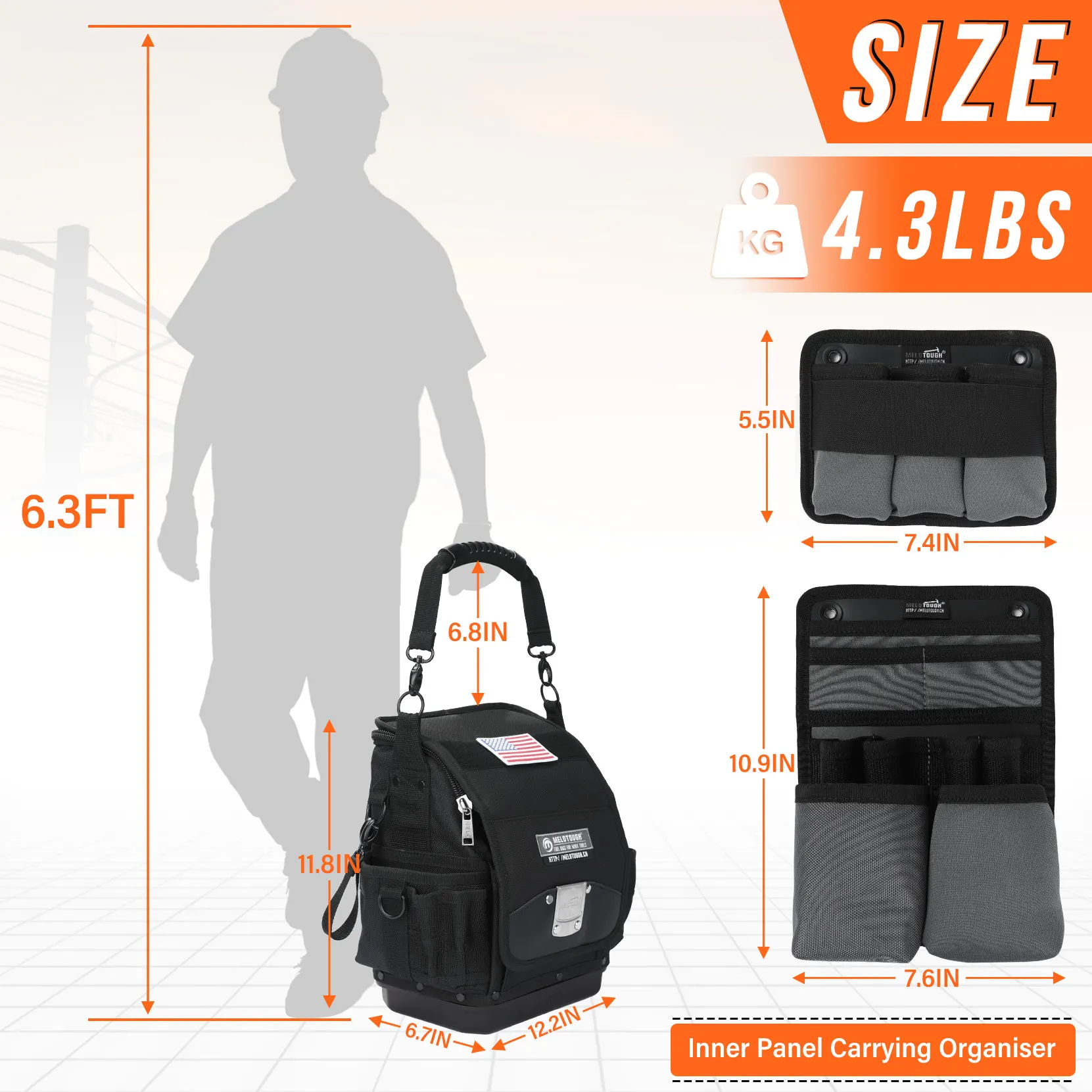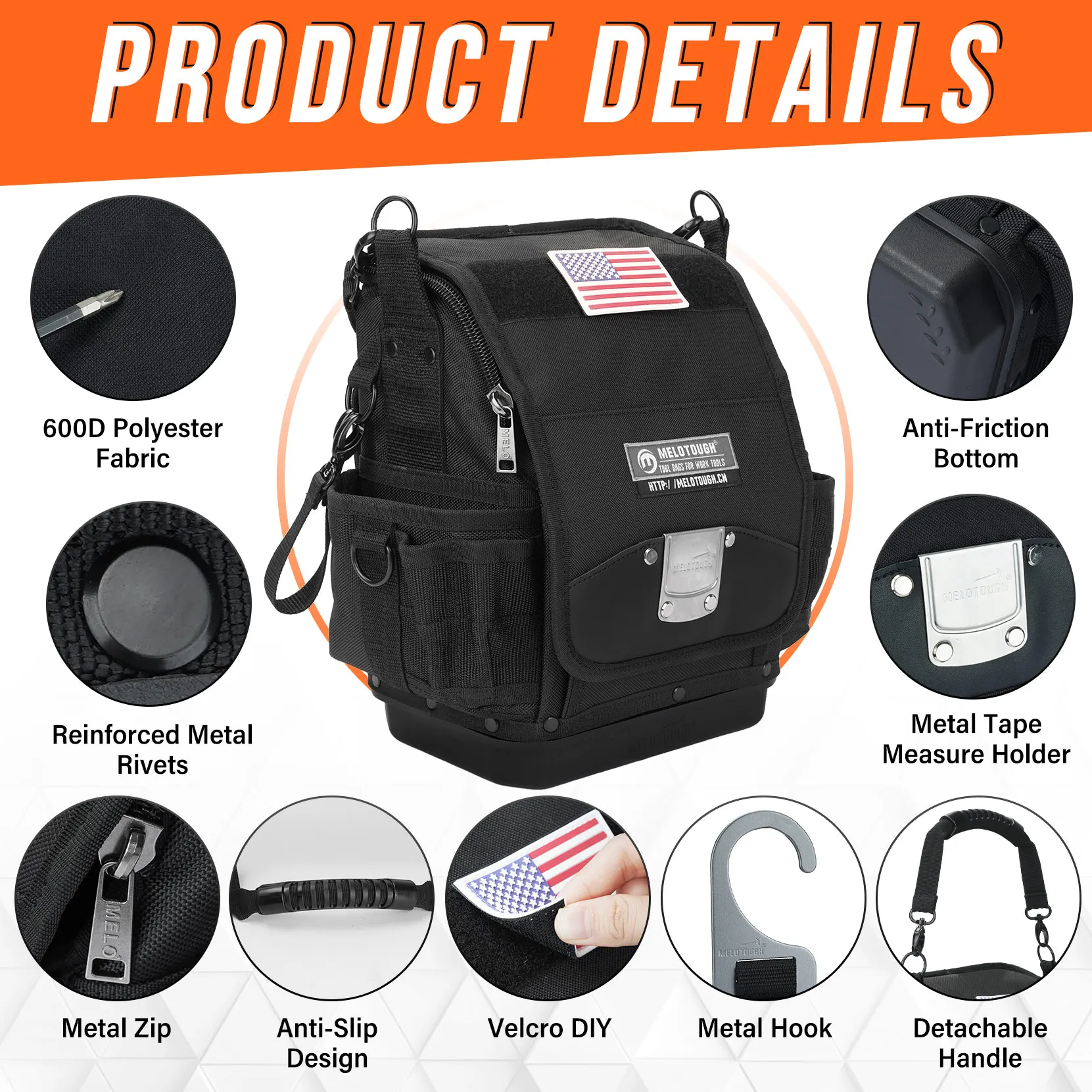 Electrician Tool Bag,44-Pockets Pro Pack Tool Bag,Pro Pac,Small Sturdy Base Heavy Duty Tool Pouch for Electrician