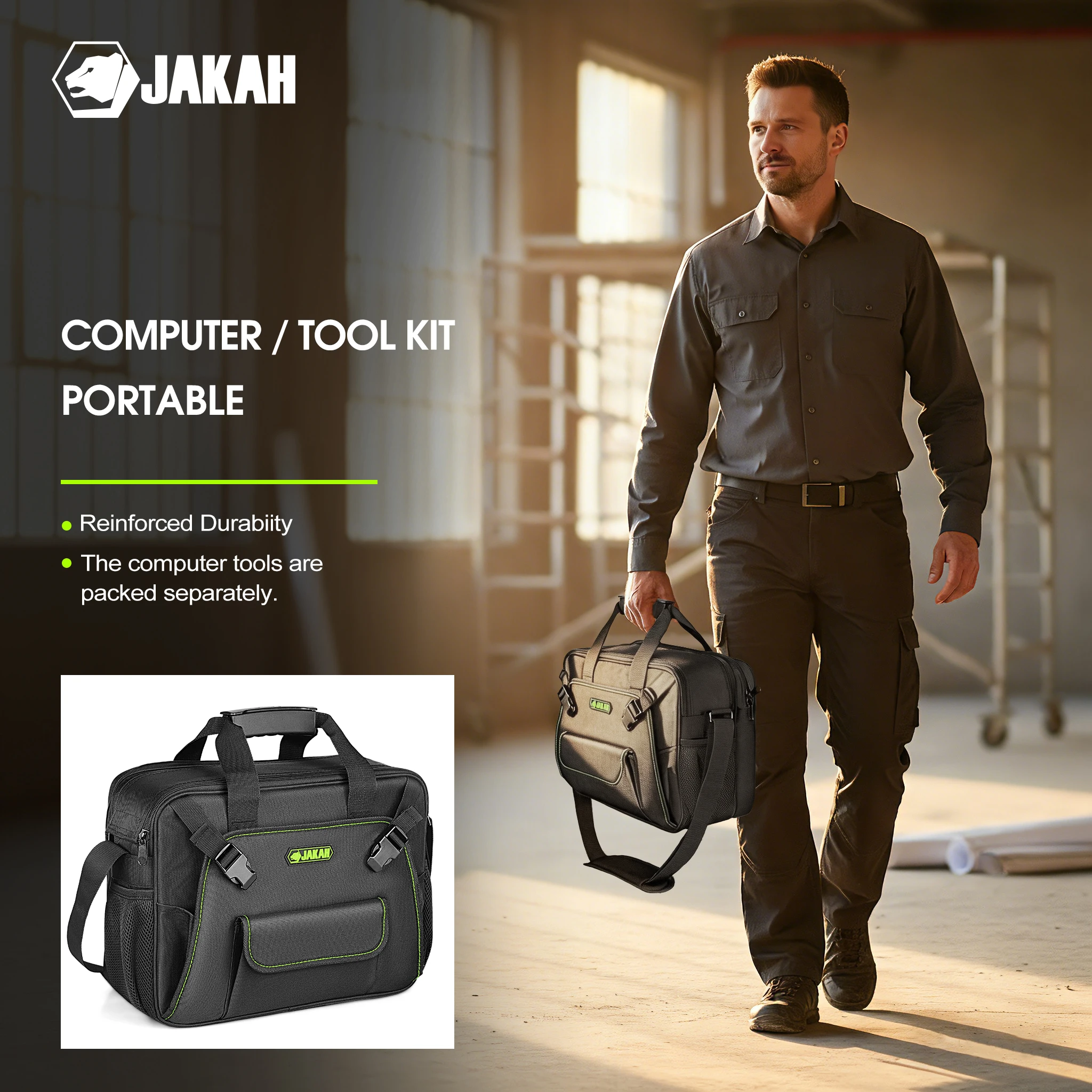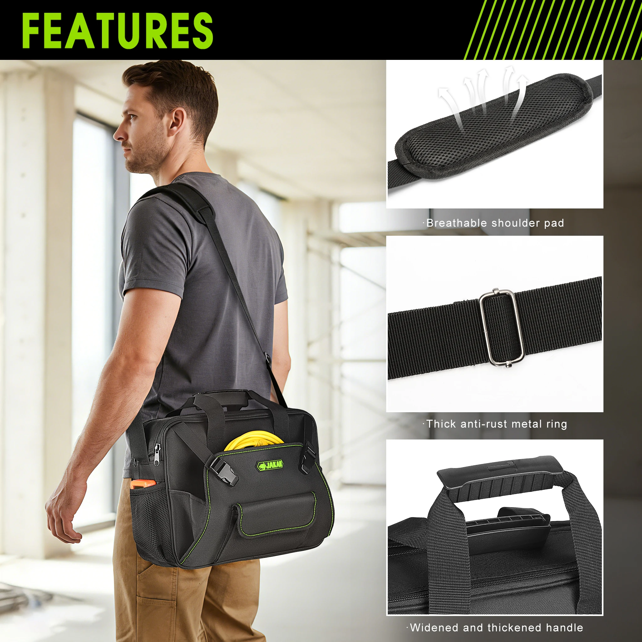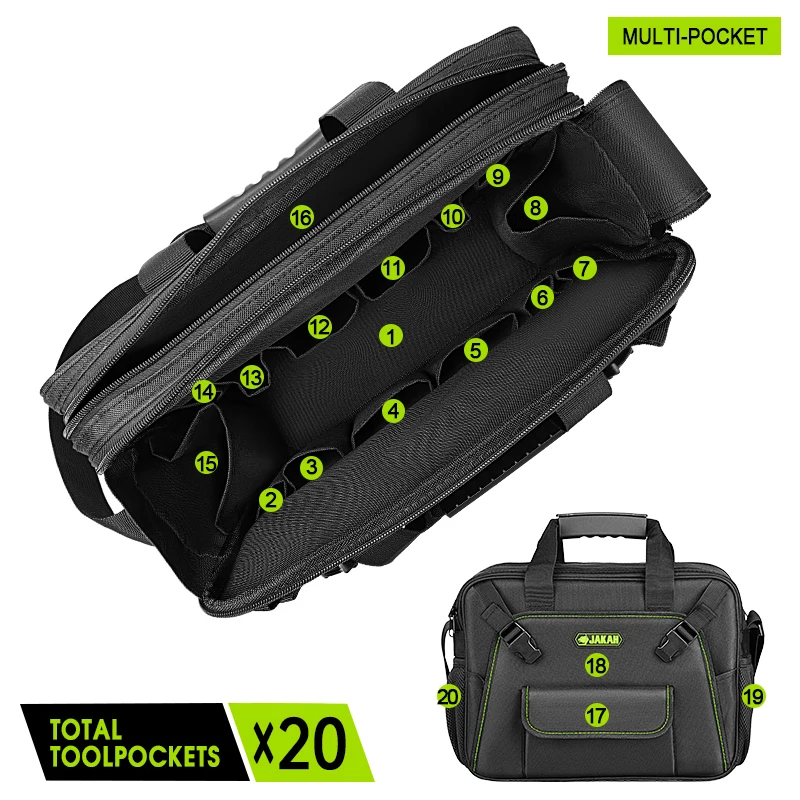 JAKAH Electrician Tool Bag Quick Access Laptop Bag + Shoulder Strap - Medium Portable Work Bag Tool Accessories JK-147