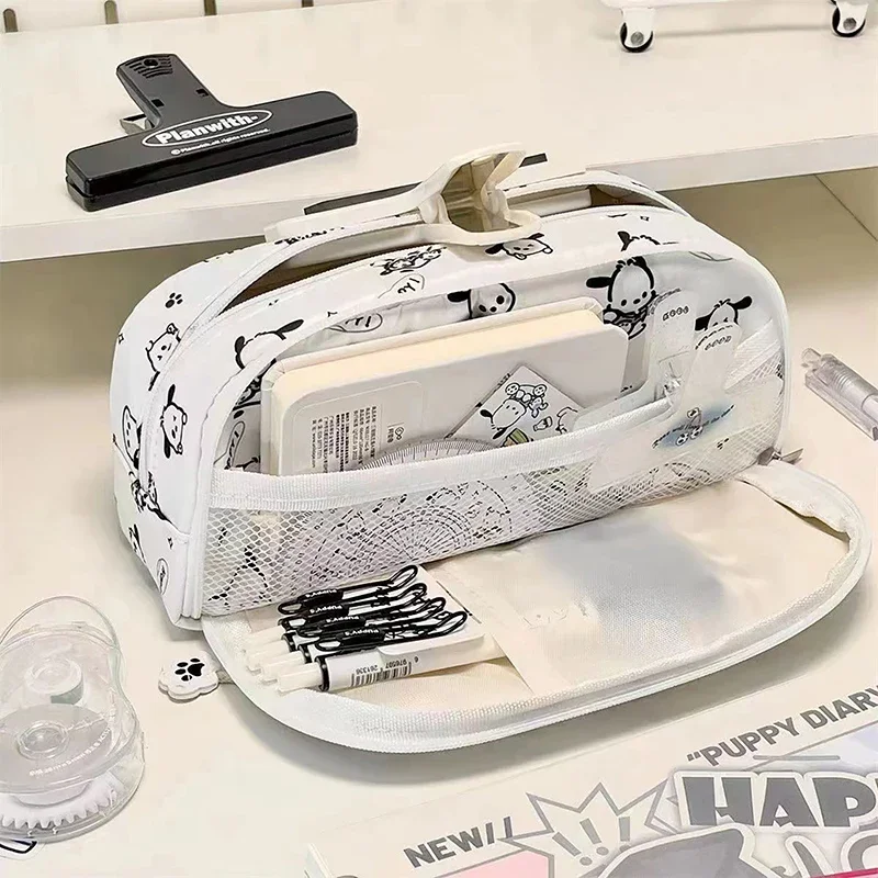 Sanrio Large Capacity Multifunctional Cartoon Pencil Case Cute Pochacco Kt Cat Printed Pattern Pencil Box School Supplies Gifts