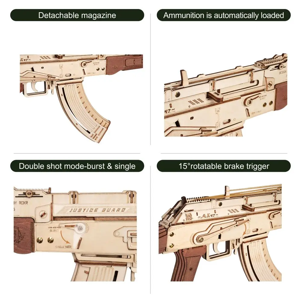 Robotime Rokr Automatic Rifle AK47 3D Wooden Gun Funny DIY Building Block Toys for Kids Adults Justice Guard Wooden PuzzleLQ901