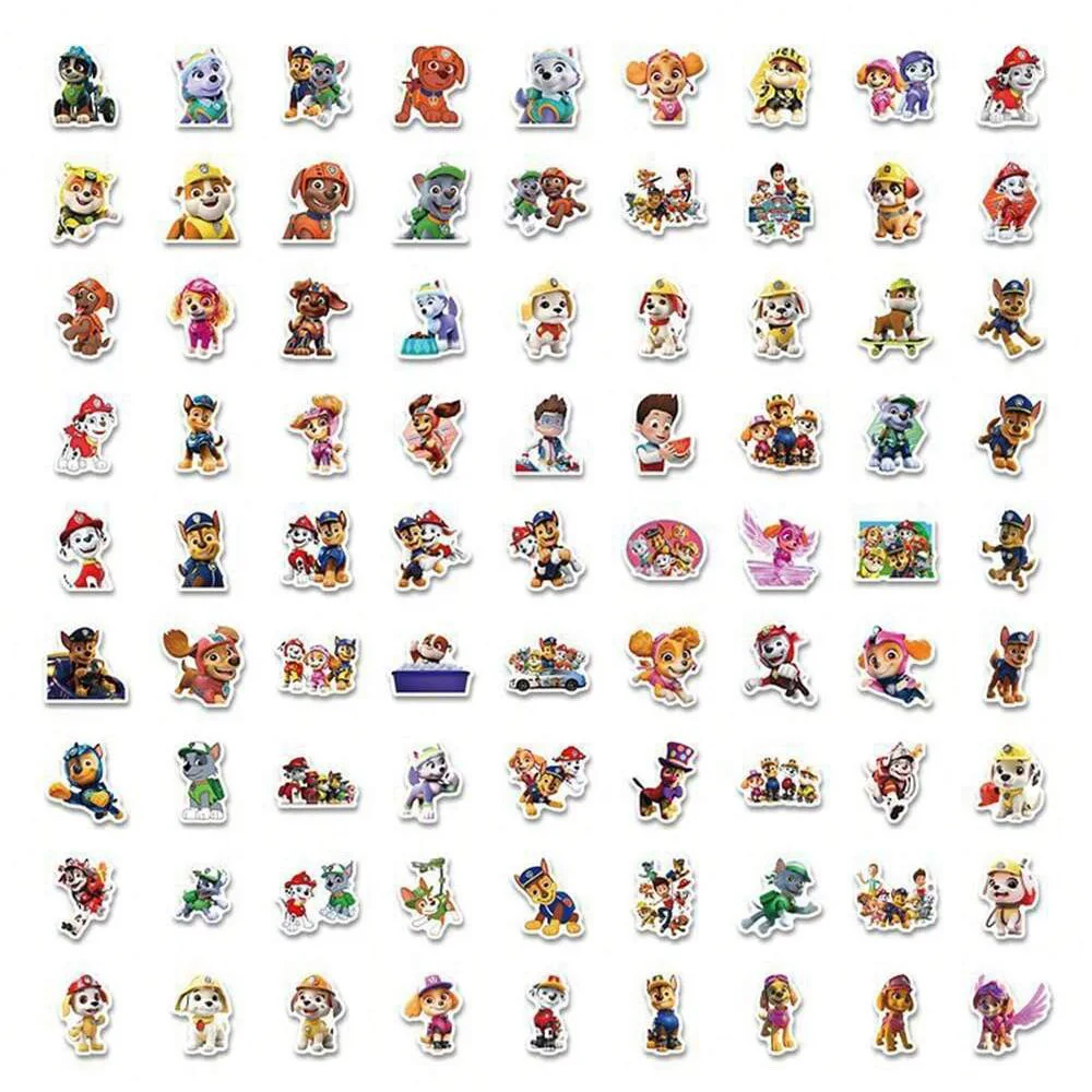 80PCS PAW Patrol Stickers Cartoon PVC Decals Toys DIY Decoration Waterproof Skateboard Luggage Phone Fridge Car Gifts