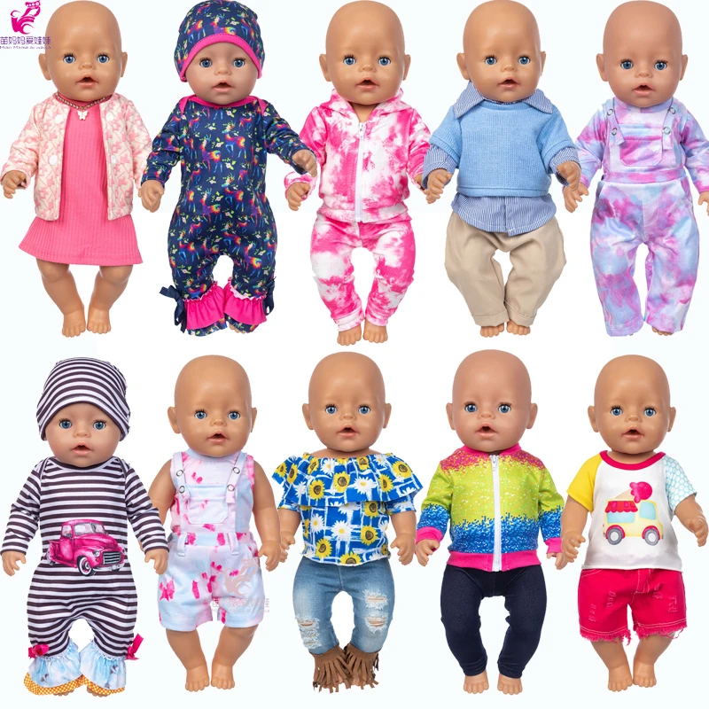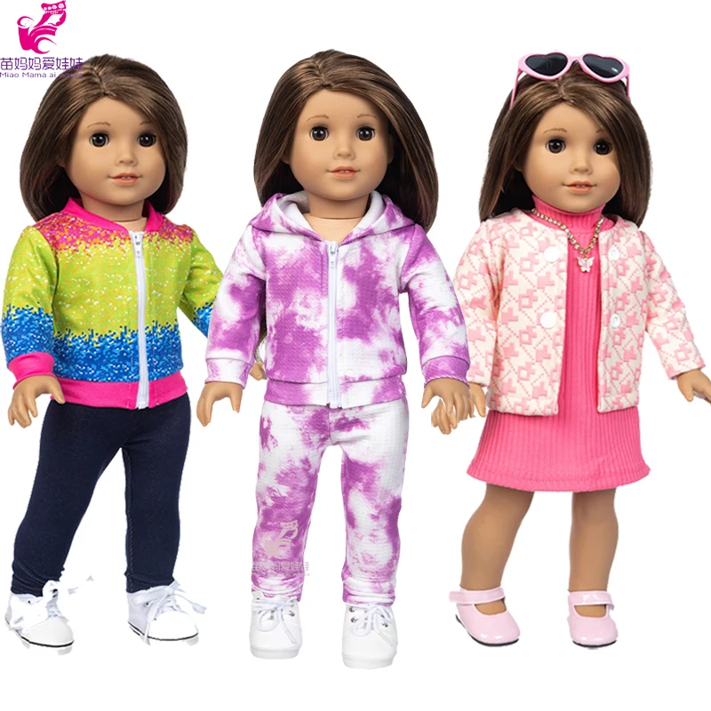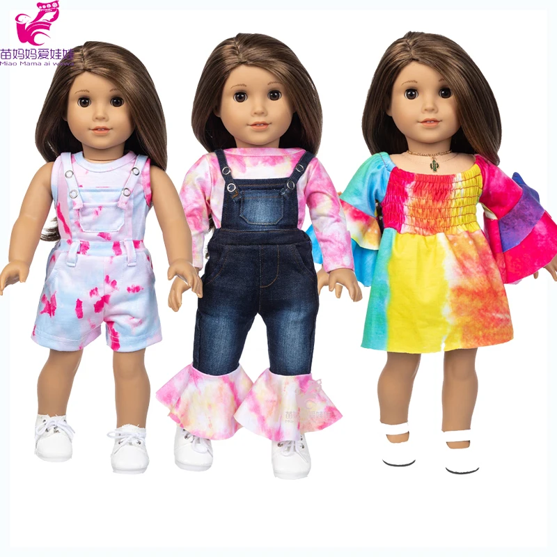 18 Inch Girl Doll Clothes Jeans Pants Overall Baby Doll Clothes Coat Pink Dress Baby Girl New Year Gift