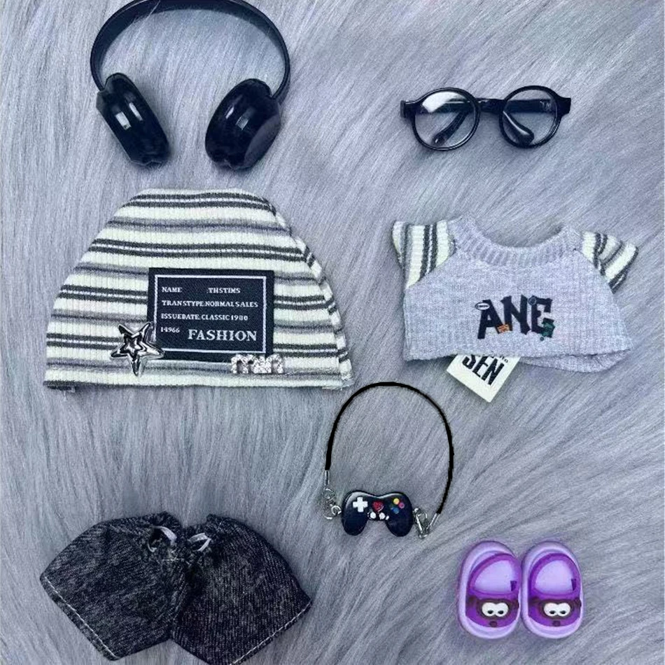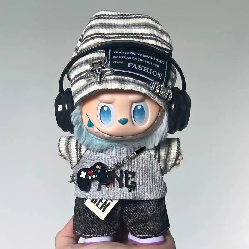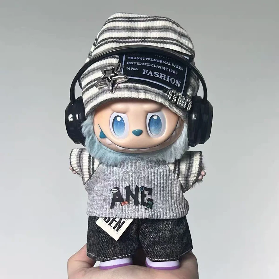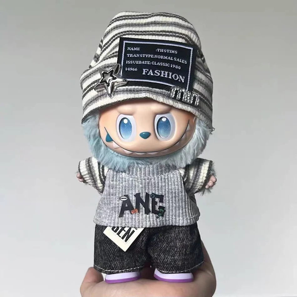 For Labubu 15-17cm Cloth Korean Grey Star Hat Suit Pull Bubu Baby Clothes 123rd Generation High-energy Hope Vinyl Doll Clothes