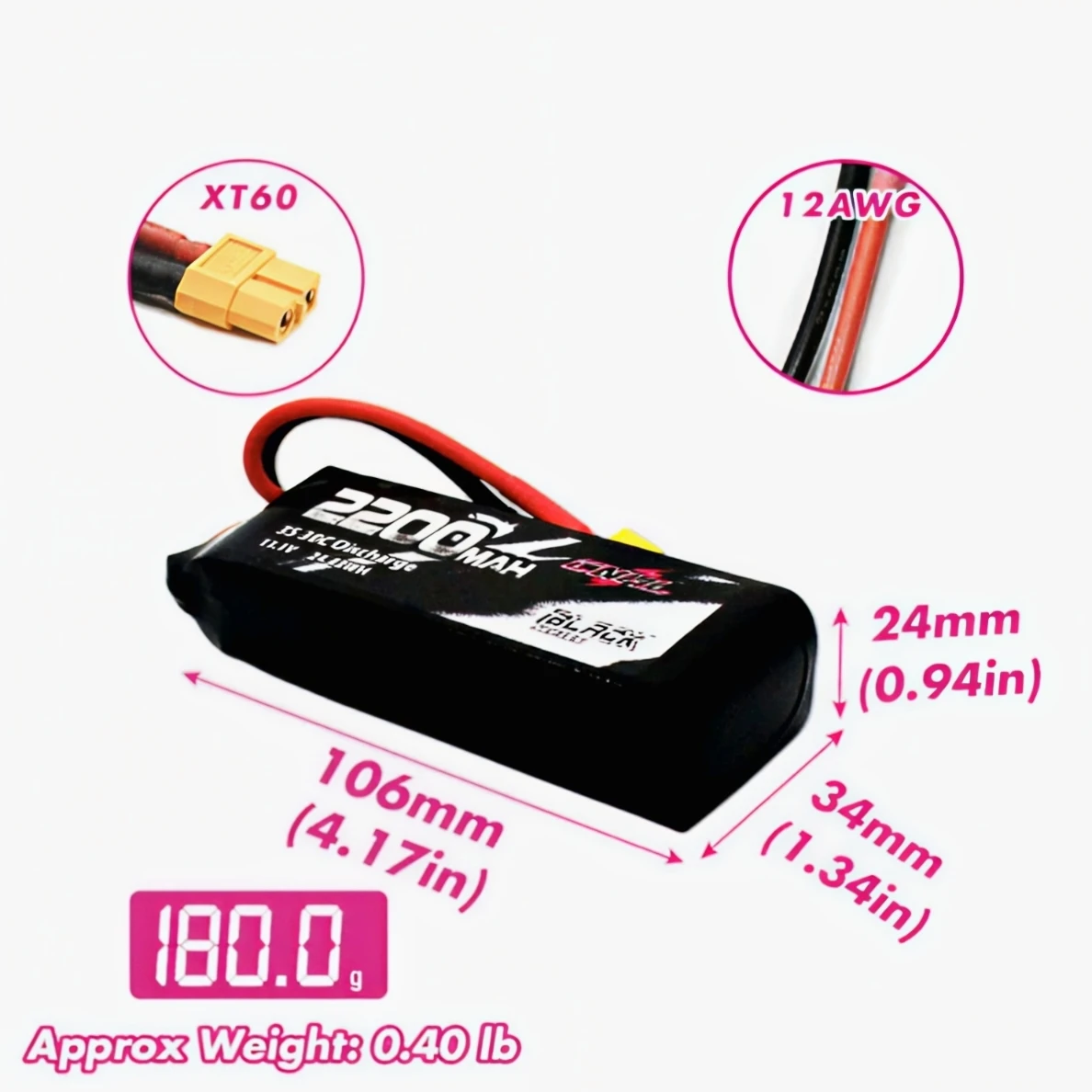 2 Packs CNHL Black Series 2200mAh 3S 11.1V 30C Lipo Battery with XT60 Plug For RC CAR Airplane Lipo Battery