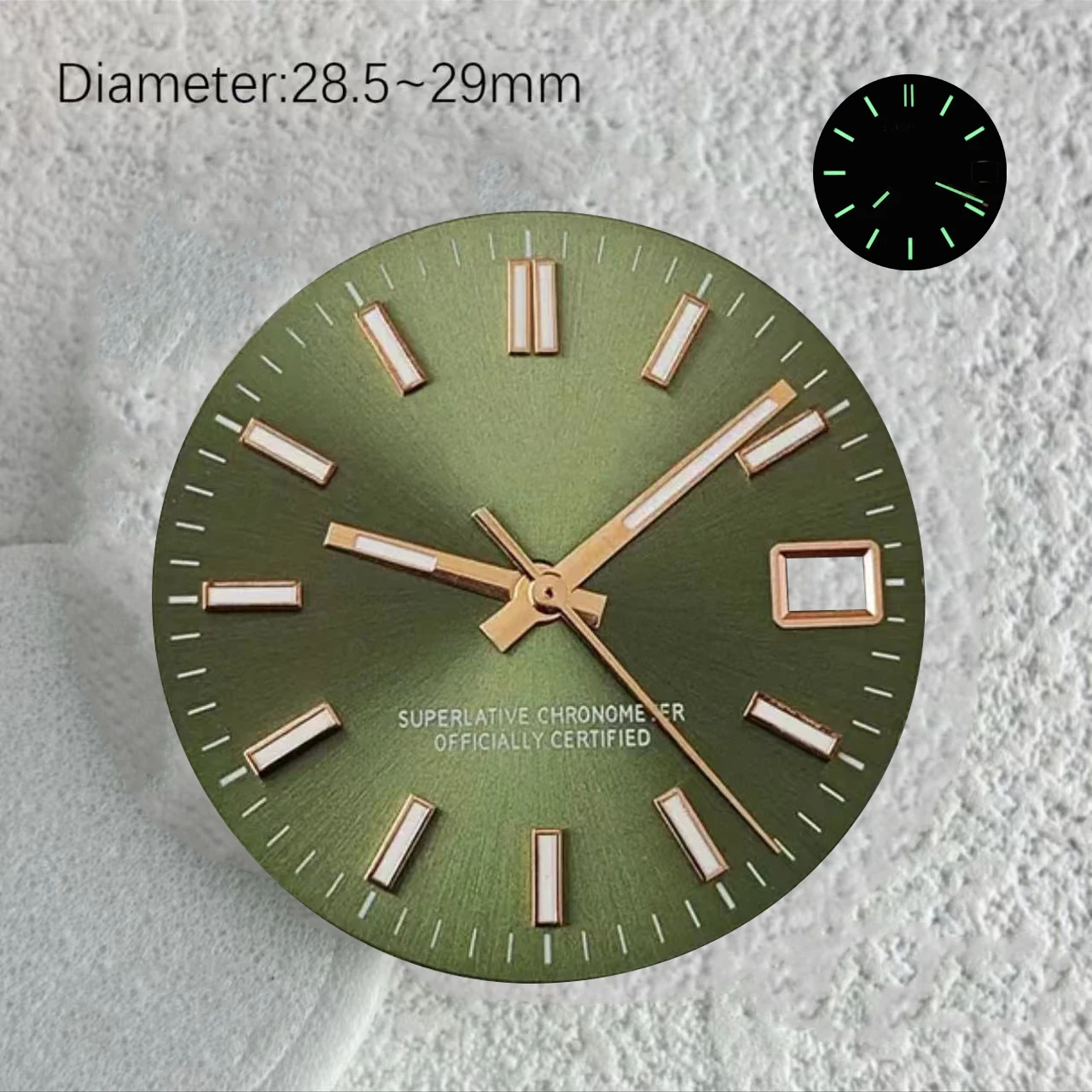 28.5mm S Logo green date Dial Suitable For NH35 Japanese Automatic Movement NH36 Green Luminous 29mm s dial Watch Accessories
