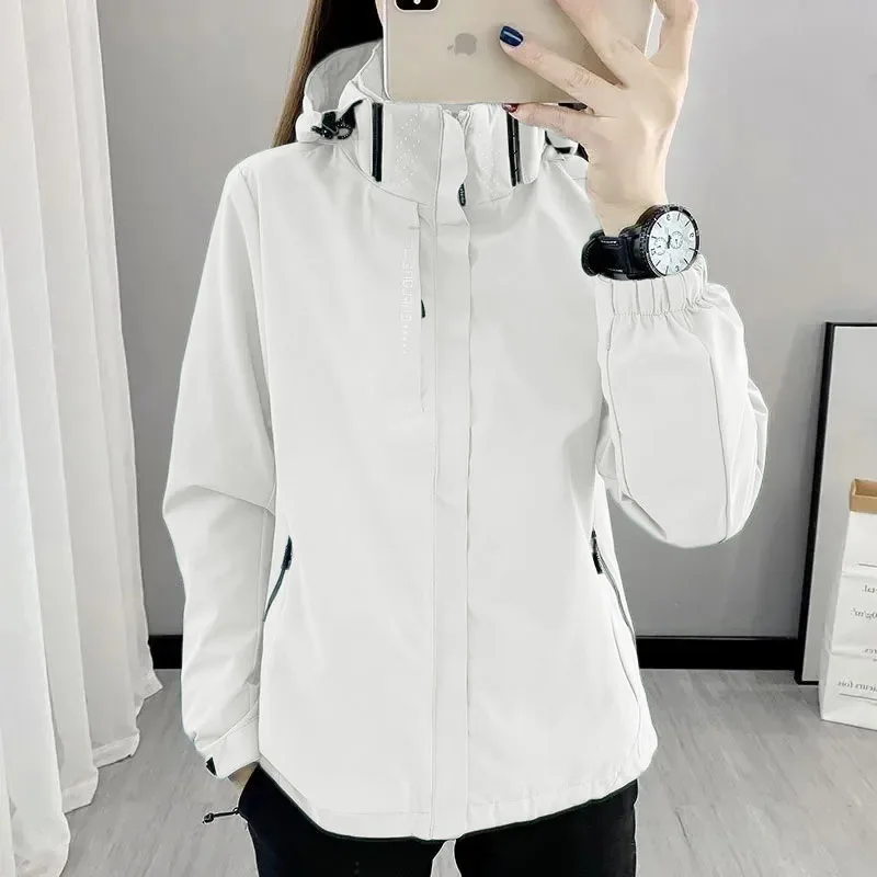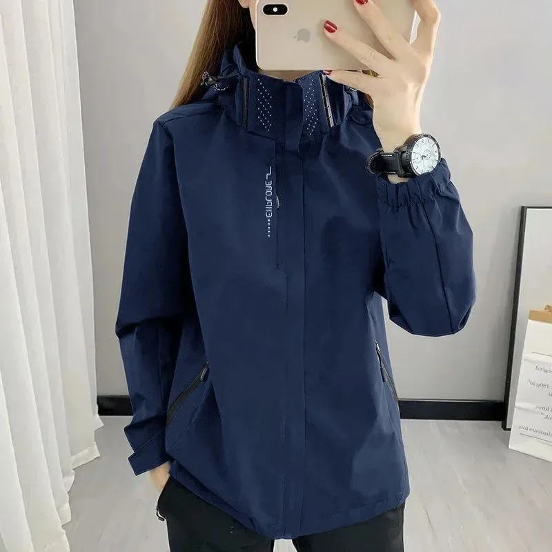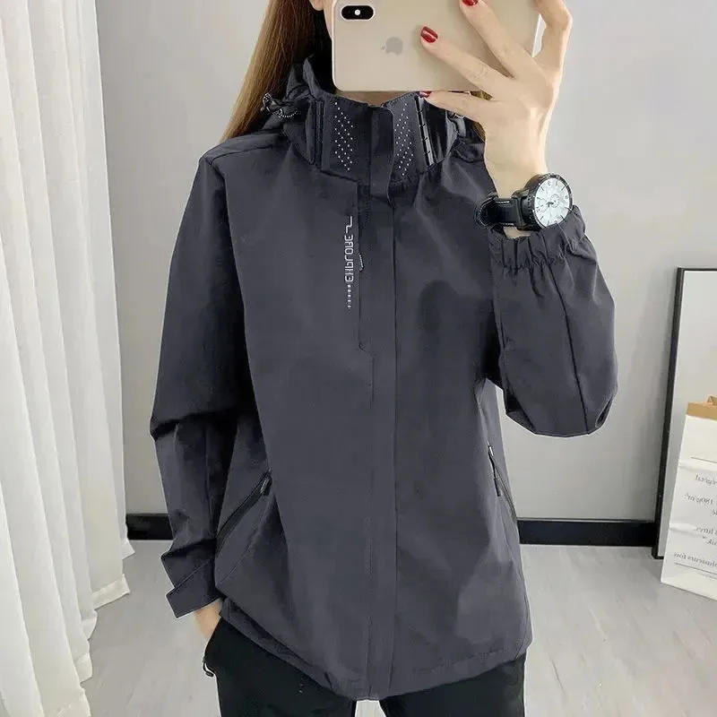 Autumn Spring Women Outdoor Jacket Windbreaker Waterproof Hooded Zipper Hiking Climbing Camping Casual Outwear Unisex Style