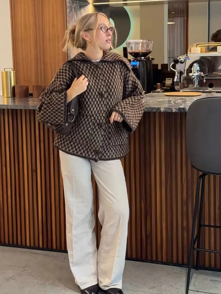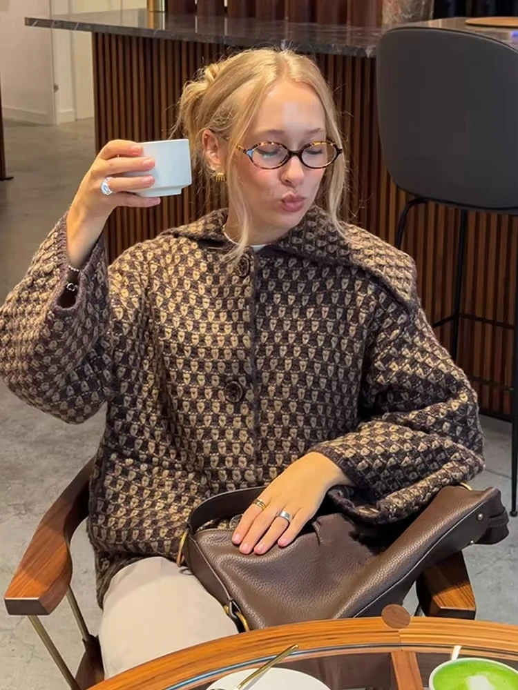 HH Women Elegant Knitted Sweater Cardigan Coat Lapel Single Breasted Long Sleeve Jackets Spring Autumn Casual Trend Streetwear