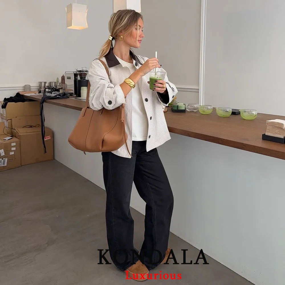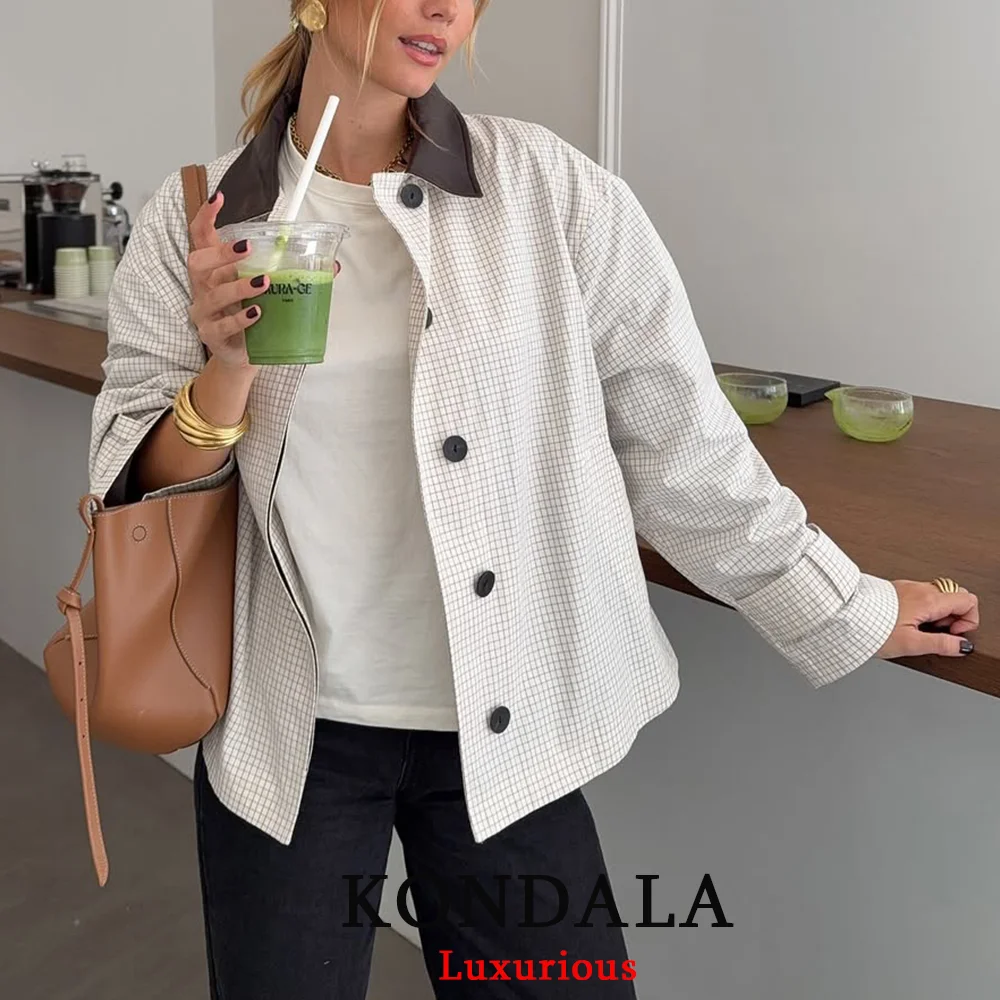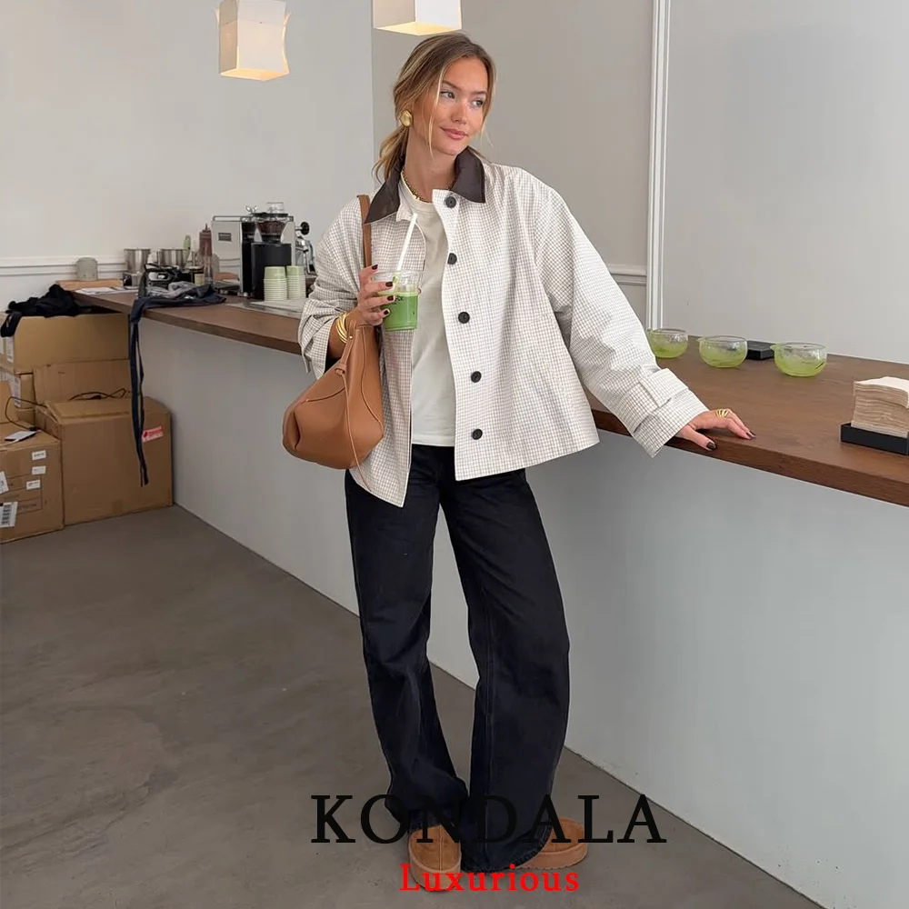 KONDALA Casual Plaid Print Women Jackets Buttons Long Sleeve Pockets Coats Fashion 2025 Fall Trench Female Office Outwears
