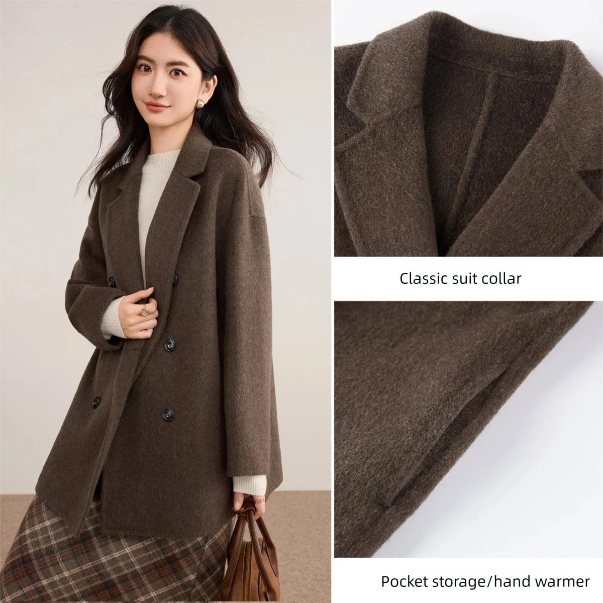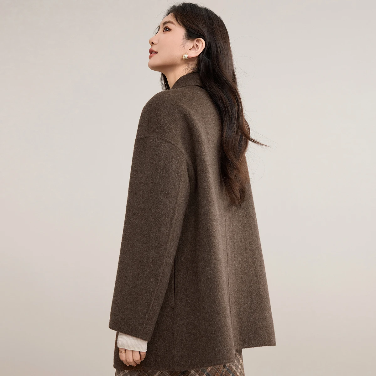 SENTUBILA Woolen Coats for Woman 2026 Winter Jackets Notch Lapel Long Sleeve Loose Coat Casual Style Women's Clothing W54OA8768