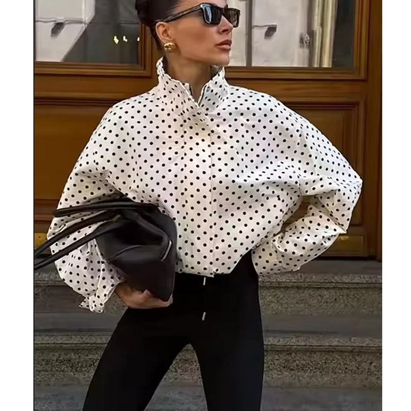 Tidalyf Women's Jackets Spring 2026 New Fashion Polka Dot Loose Elegant Jackets Blouse Chic Youth Joker Holiday Street Coats