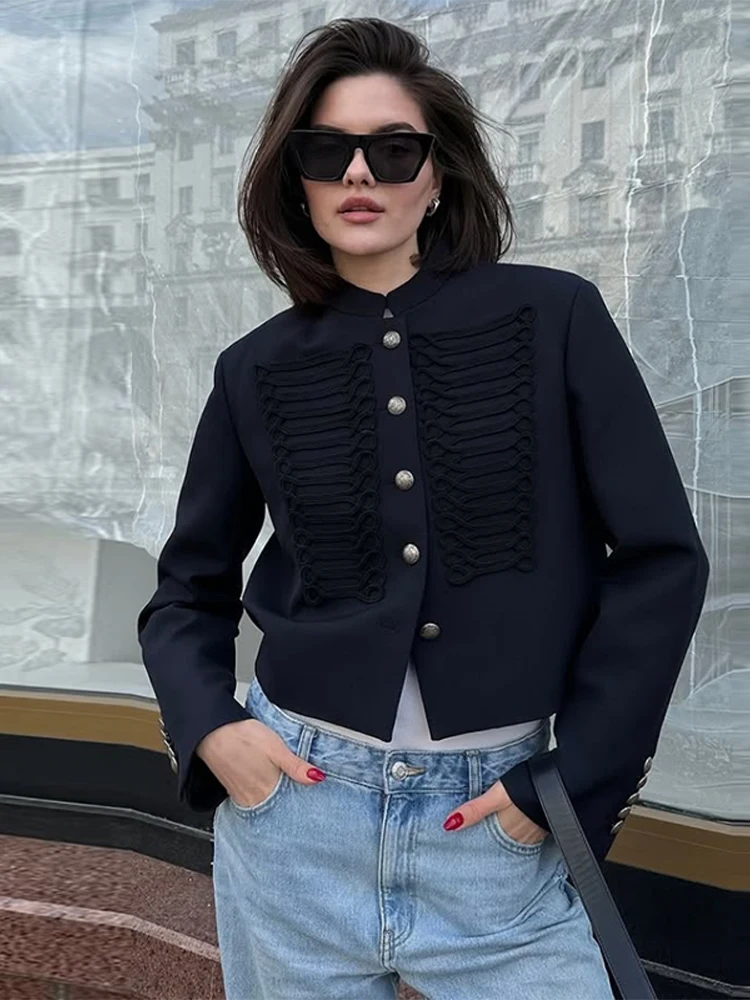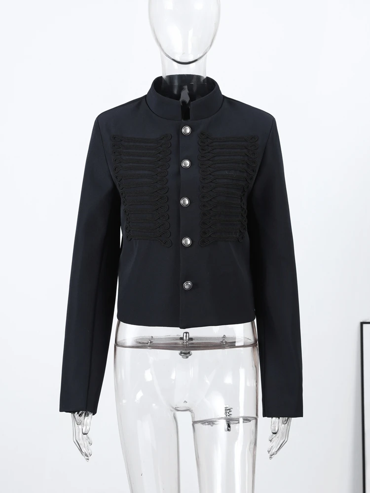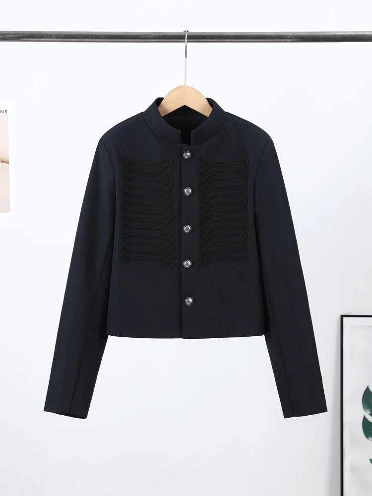 Vintage Women Stand Collar Jacket Single Breasted Long Sleeve Napoleon Style Female Coat Chic Top Party High Street 2026 New