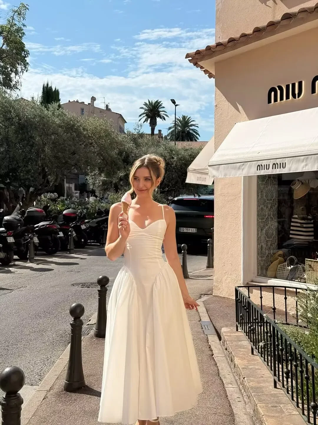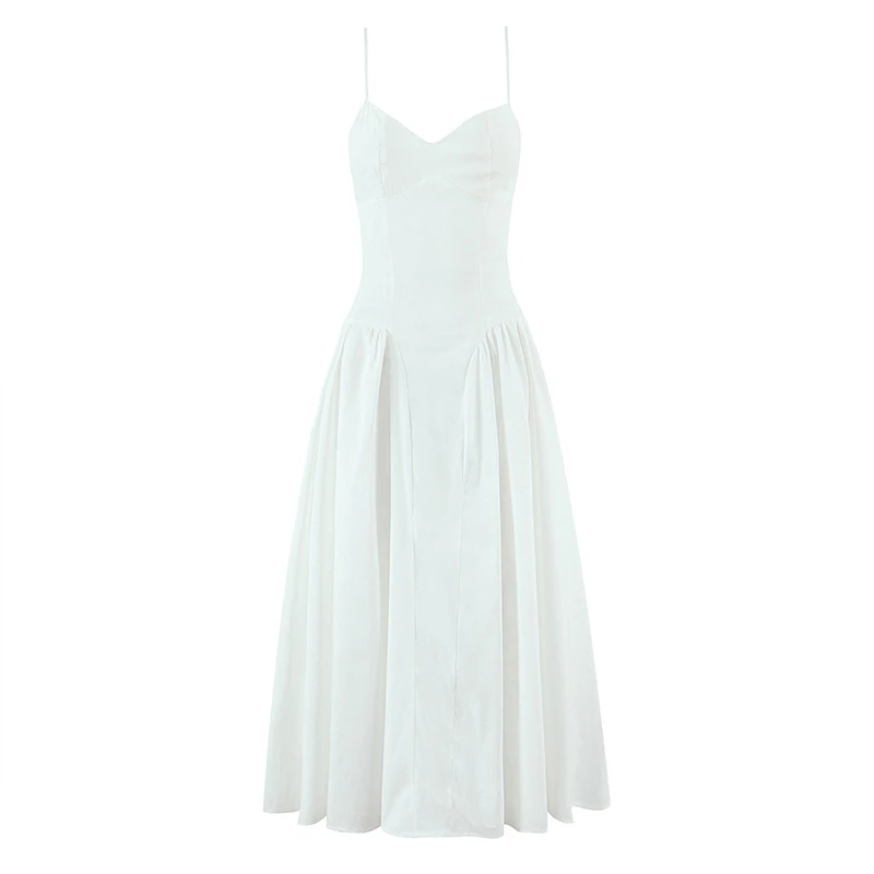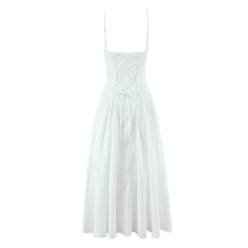 YENKYE Sexy Spaghetti Straps Elegant White Dress Women Lace Up Bandage Back V Neck A-line Evening Party Dresses Midi Robe 2025