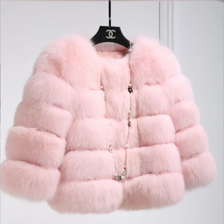 New Fashionable Women Autumn Winter Imitation Fox Fur Faux Coat Women's Short Long Sleeve Fur Artificial Coat Haircoat Outerwear