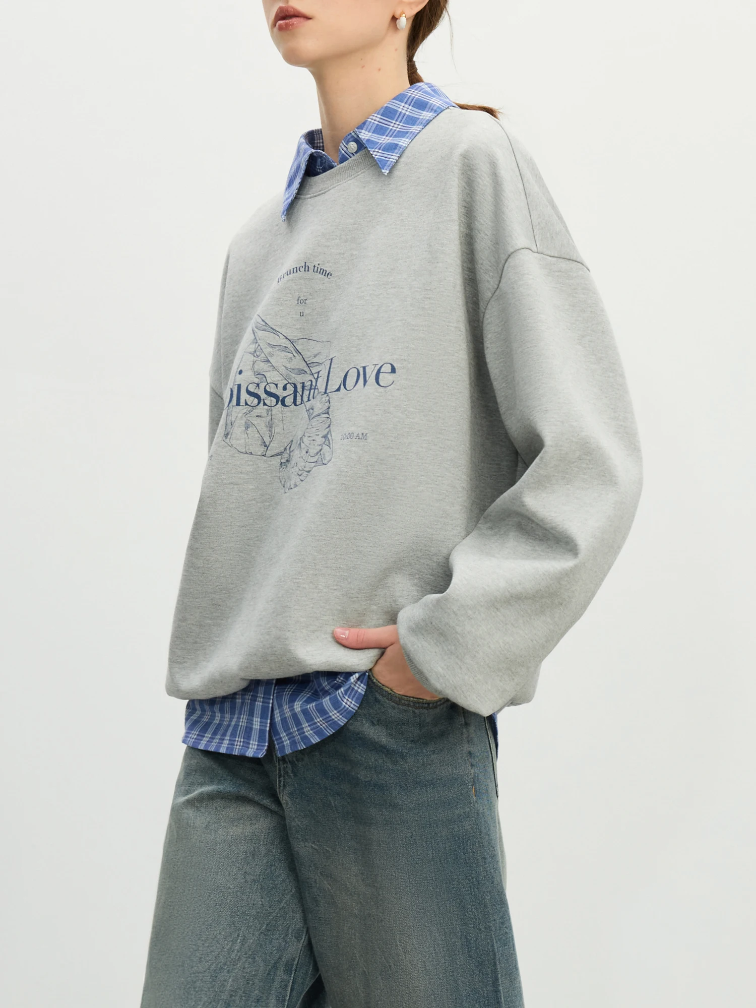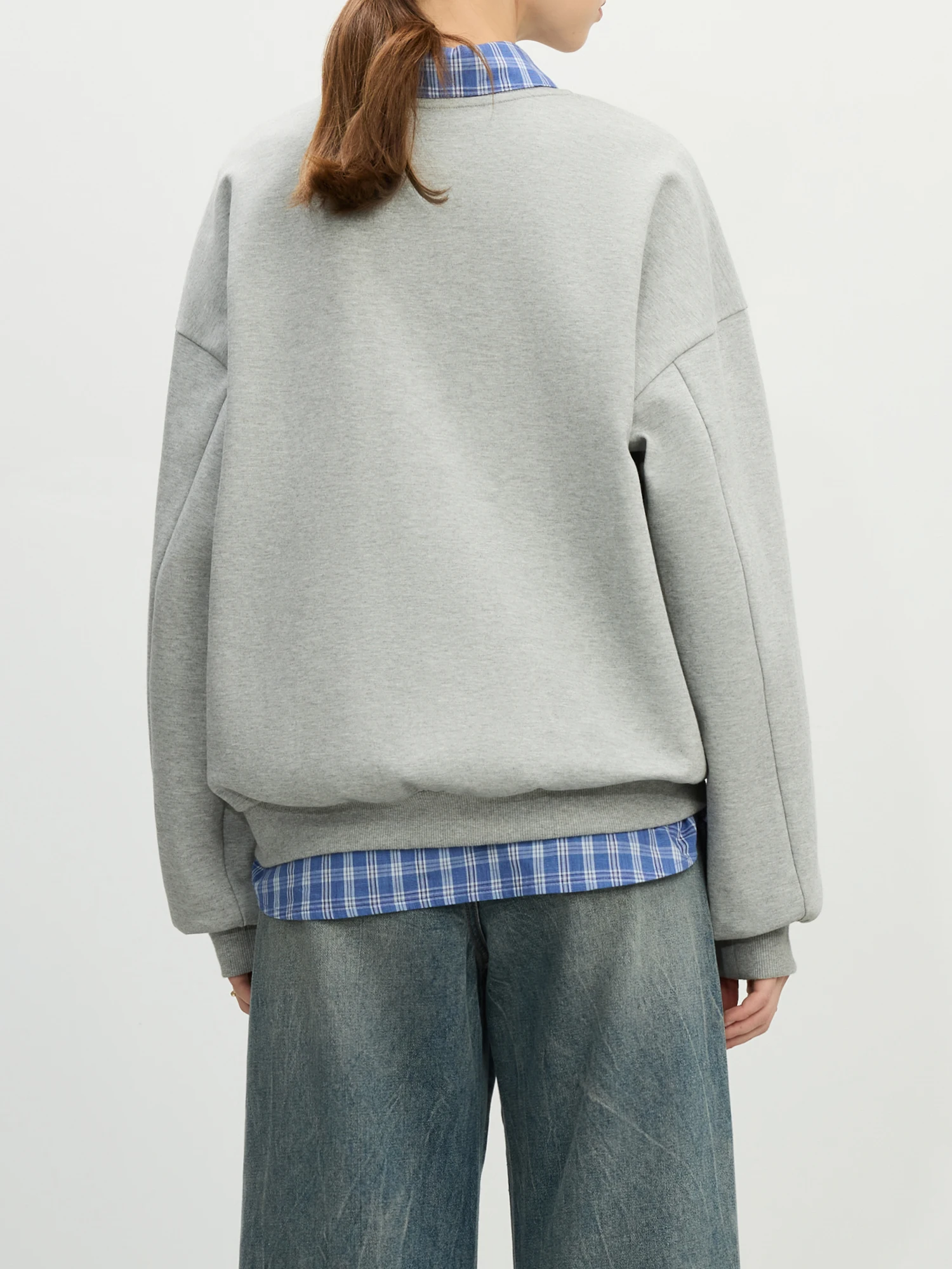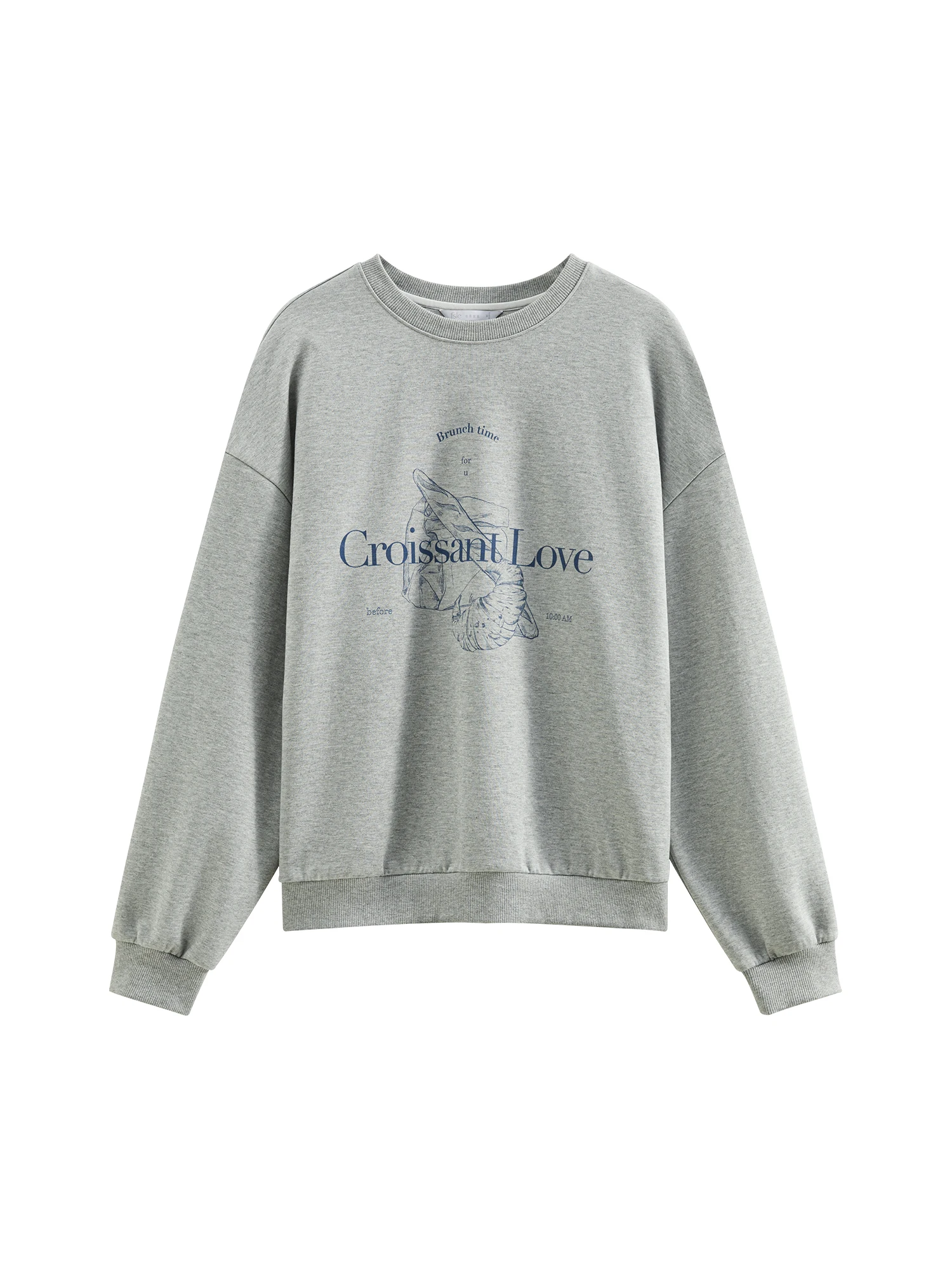 FSLE Grey Hoodless Round Neck Sweatshirt for Women 2025 Spring New Design All-match Casual Loose Top Chic Outfits 25FS11112