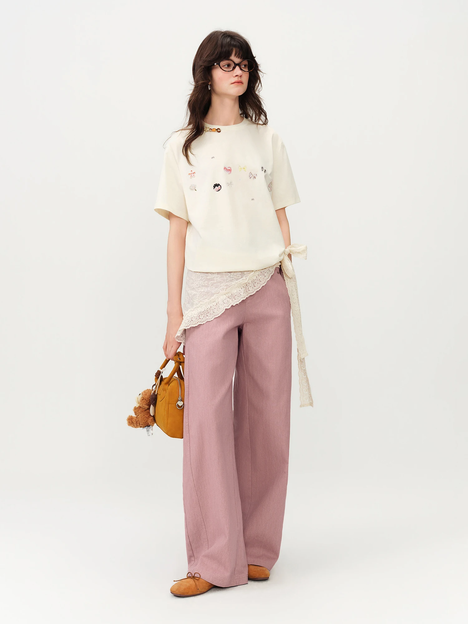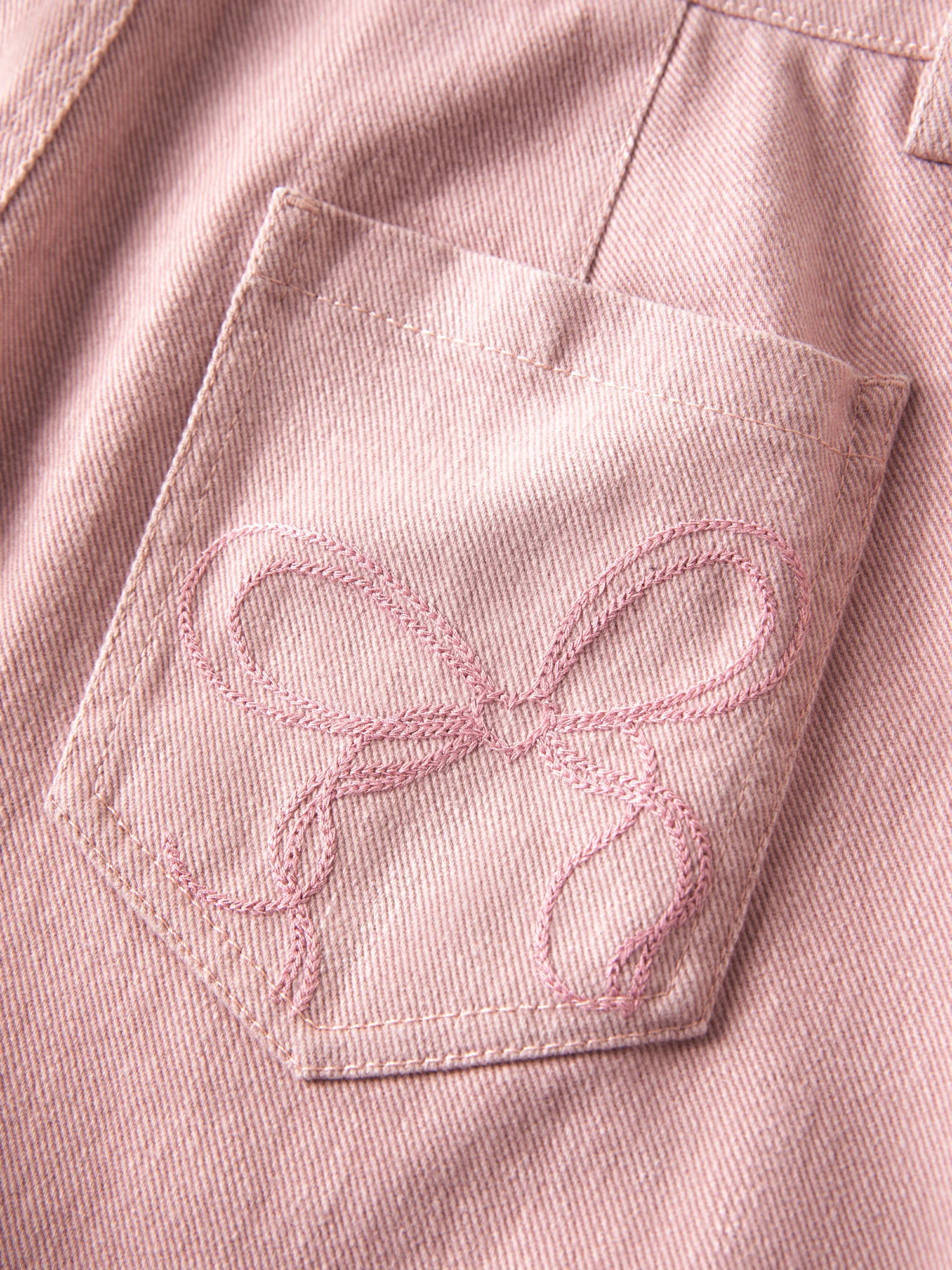 FSLE Youthful Sweet Bow Embroidery Mid-High Waist Jeans for Women Spring 2026 New Arrival Pink Girl Floor-Lenghth Long Jeans