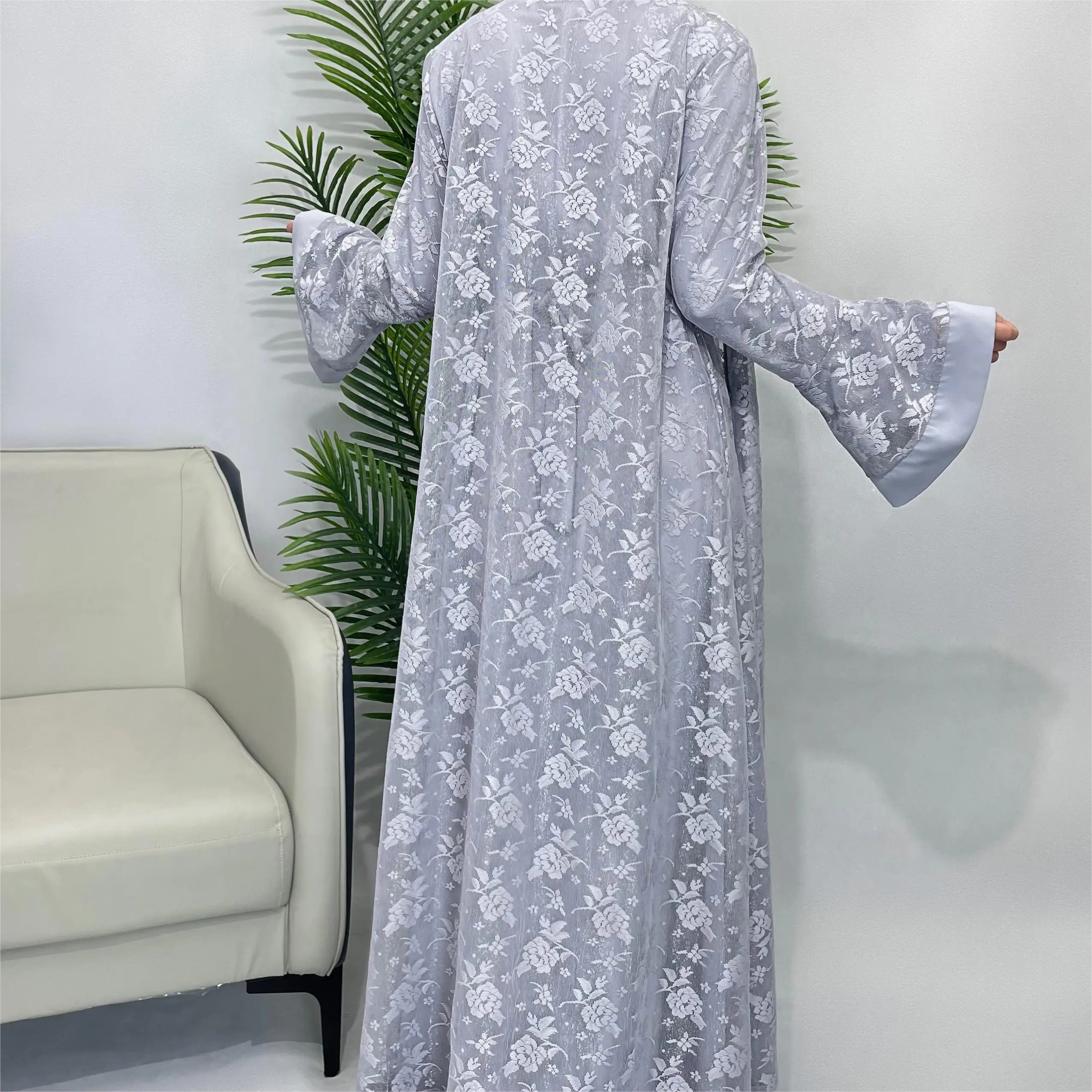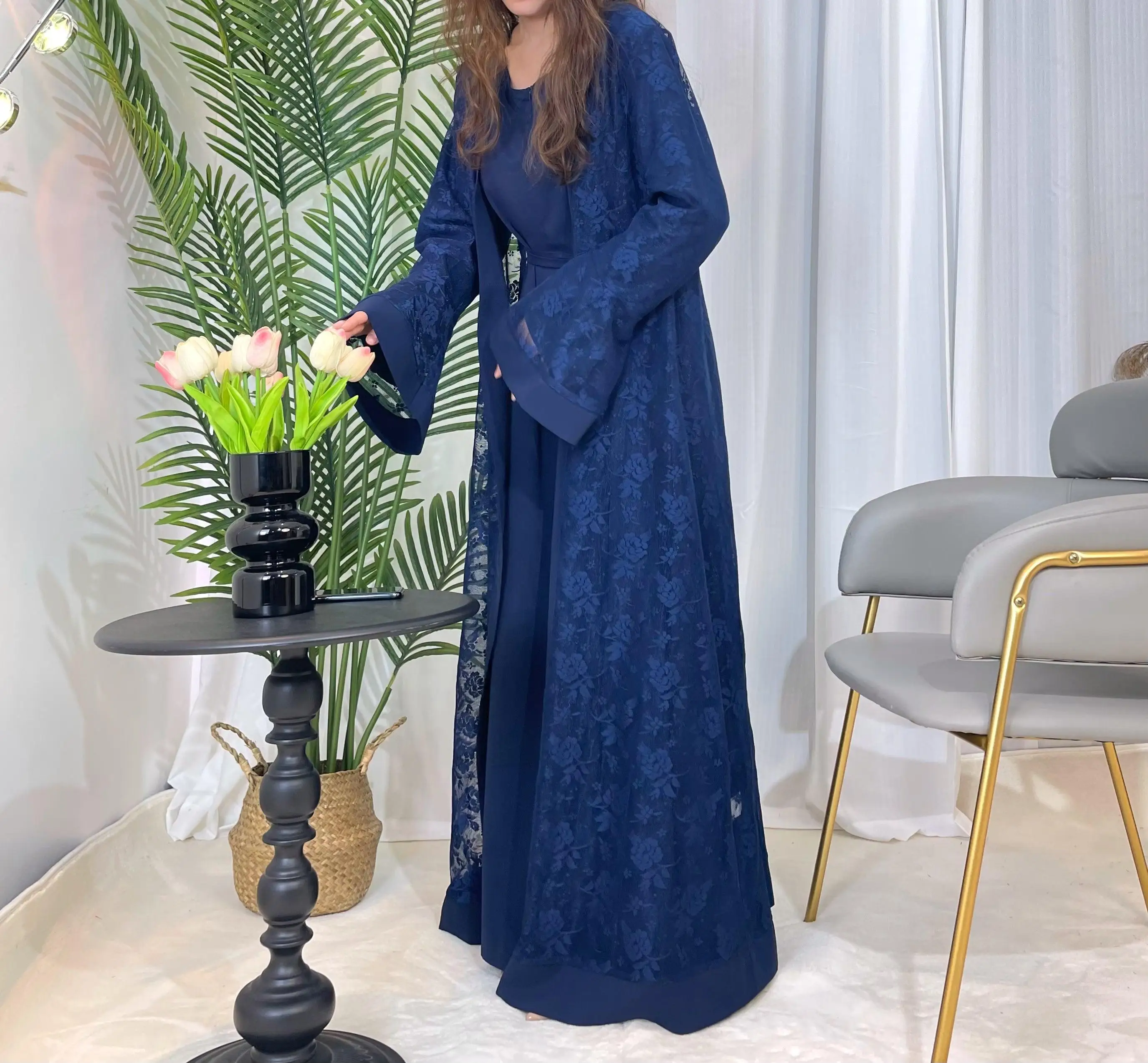 Lace two-piece outfit lace abaya inner dress and cardigan, nida abaya muslim dres