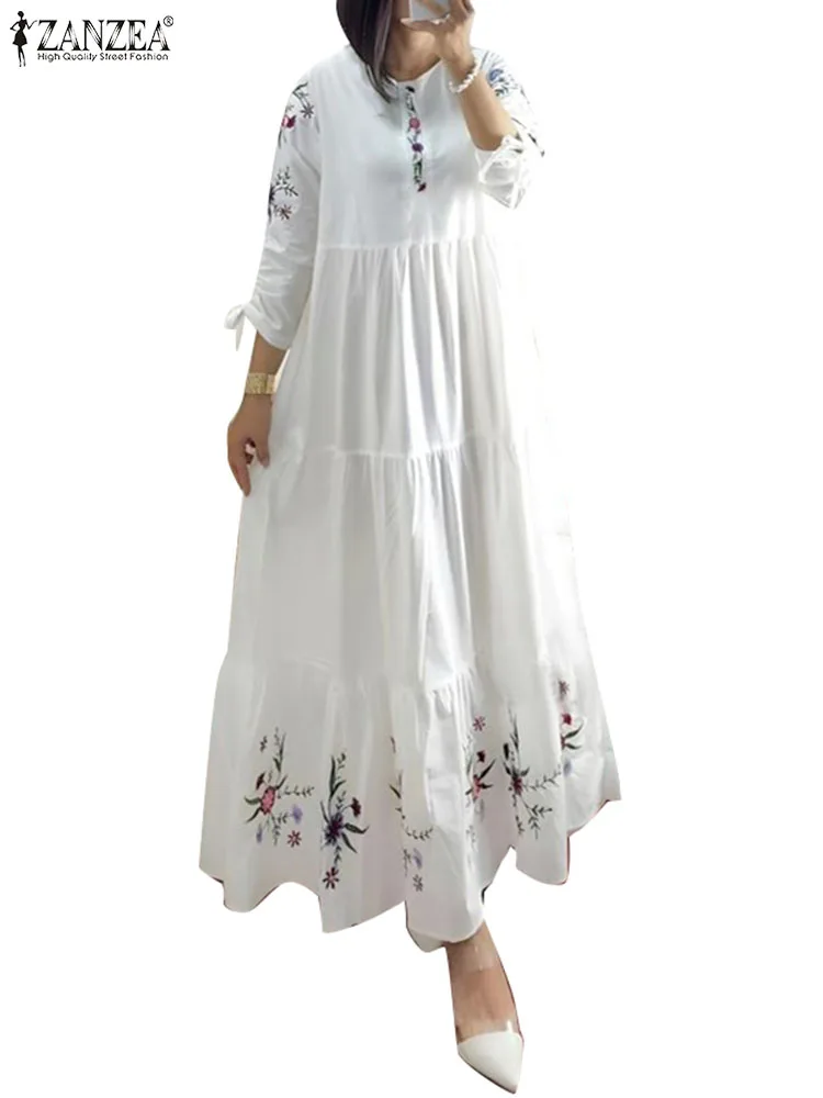 Women Floral Printed Muslim Dress Spring 3/4 Sleeve Maxi Vestidos Robe Femme ZANZEA Summer Sundress Elegant Loose Abaya Kaftan