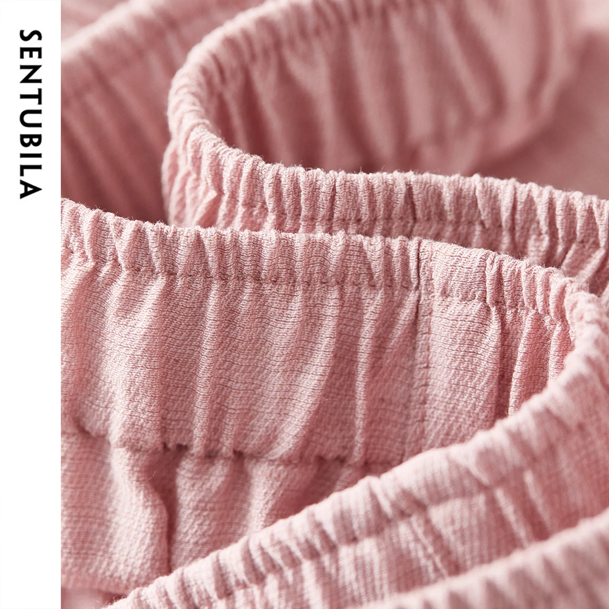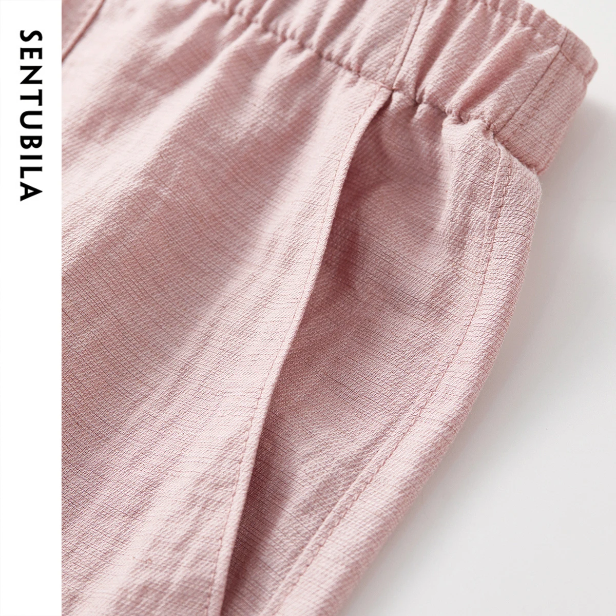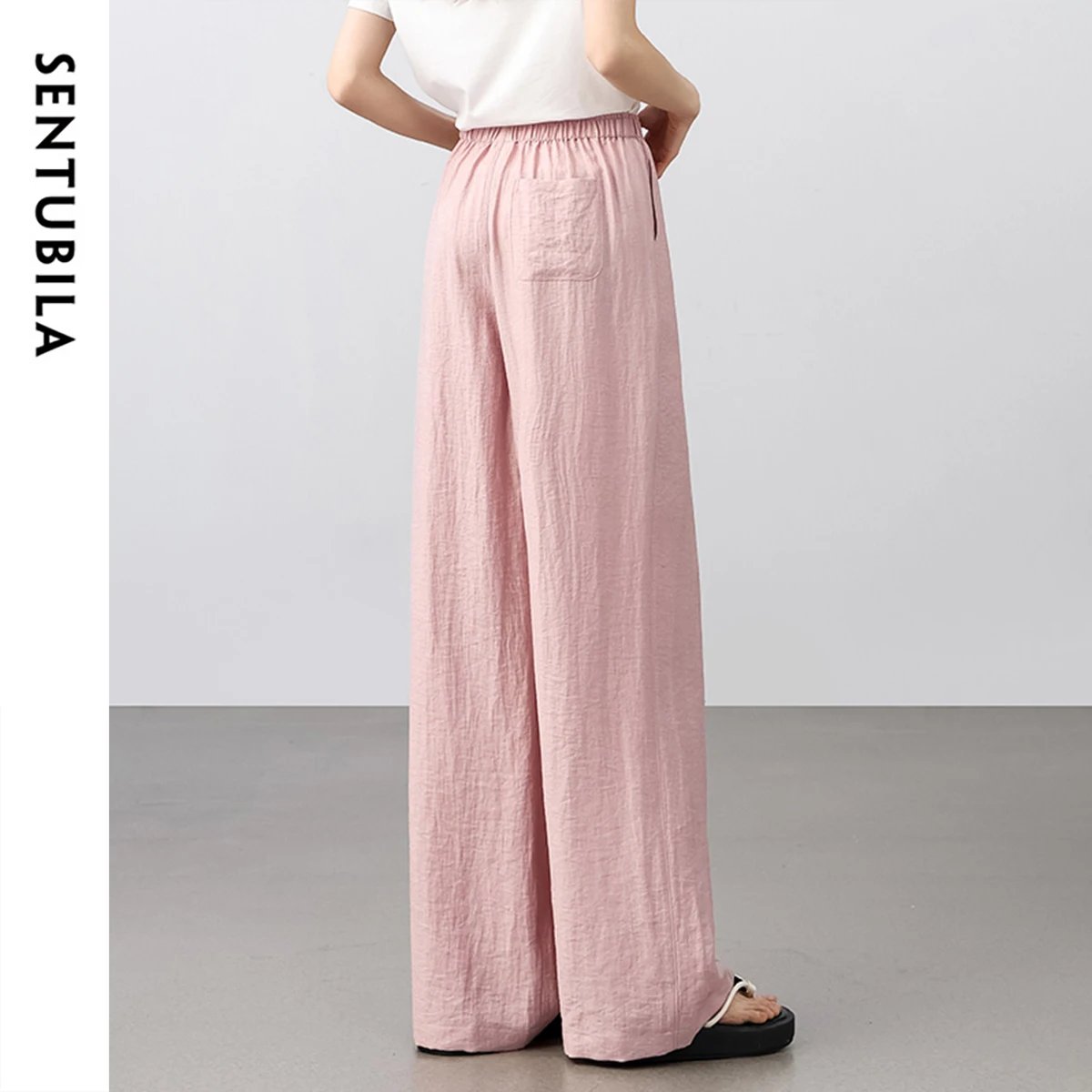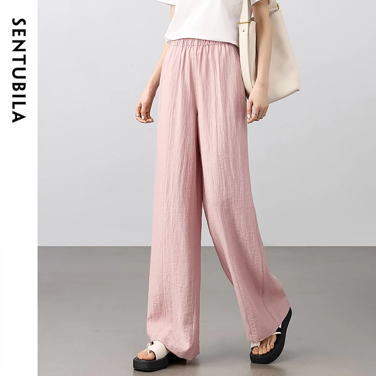 SENTUBILA Straight Pants for Women 2026 Spring Summer Linen Blend Solid Color High Waist Full-length Trousers Lady 152K80230